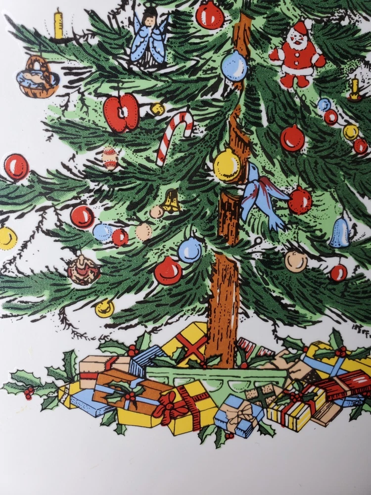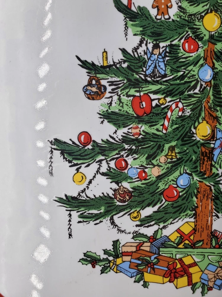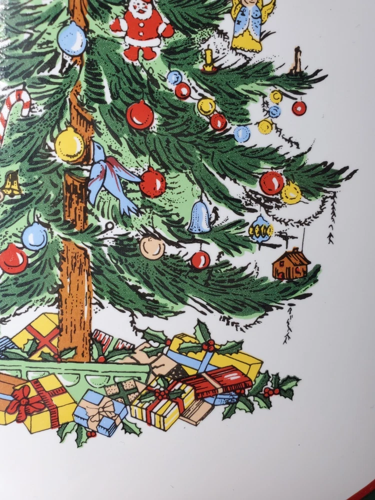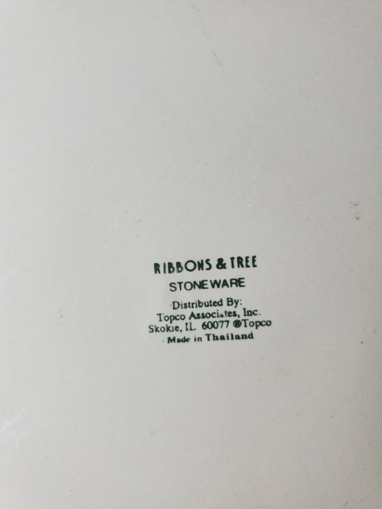 gtin13: Does not apply Brand: Topco Item Width: 11 in Type: platter Model: Topco Ribbons UPC: Does not apply MPN: does not apply Occasion: Christmas Care Instructions: Hand wash Material: Stoneware Style: Contemporary Item Weight: 1 lb 5.8 oz Theme: Christmas Tree Color: Multicolor