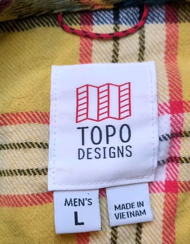 Topo Designs Colorado Yellow Plaid Long Sleeve Flannel Button-Up Shirt in Large
