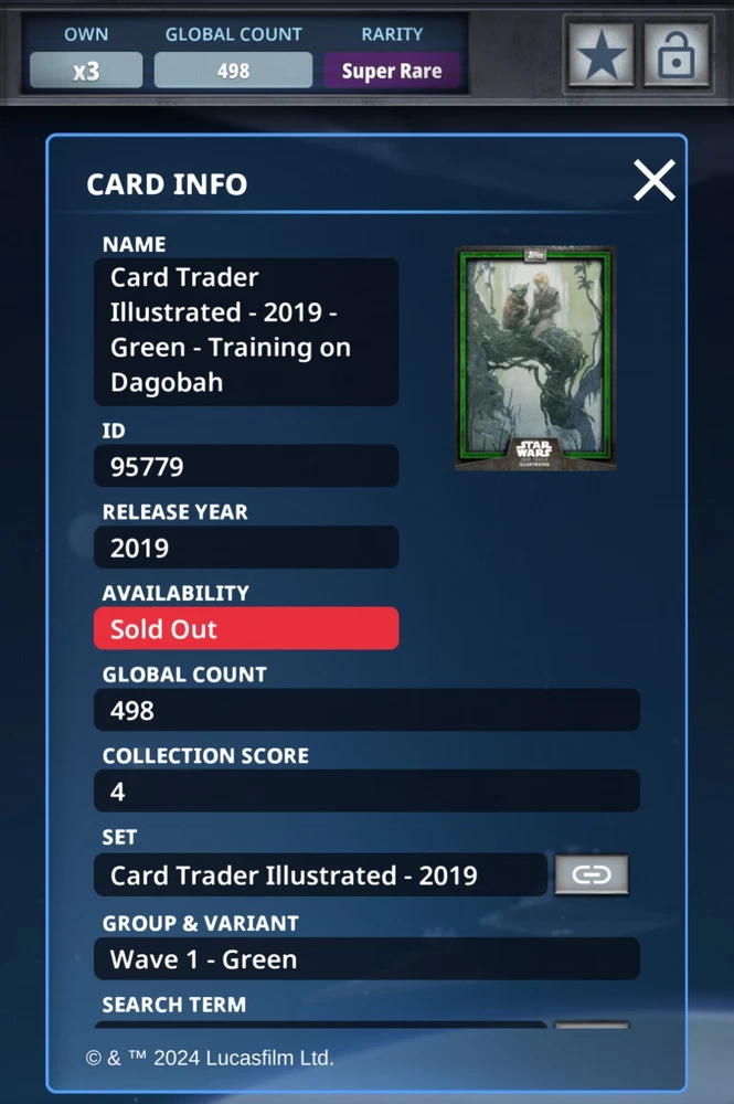Topps Star Wars Card Trader 2019 Card Trader Illustrated Wave 1 Super Rare Green CTI Training On Dagobah This is a digital card. Please include Swct IGN with purchase. We do not sell to new accounts or accounts with poor trade ratings.
