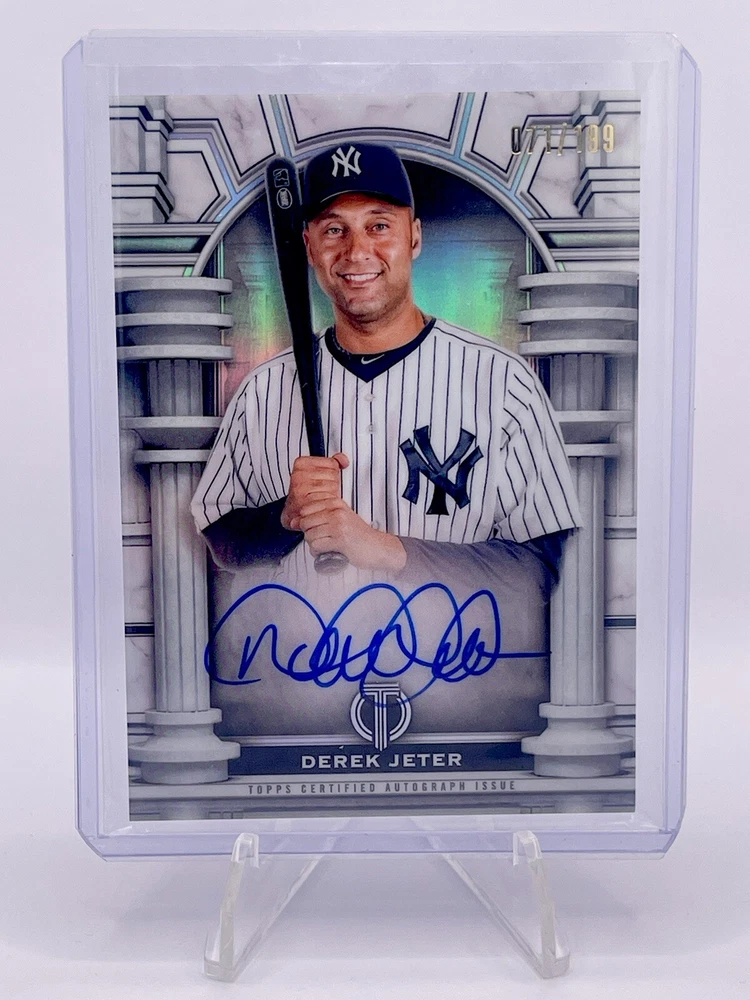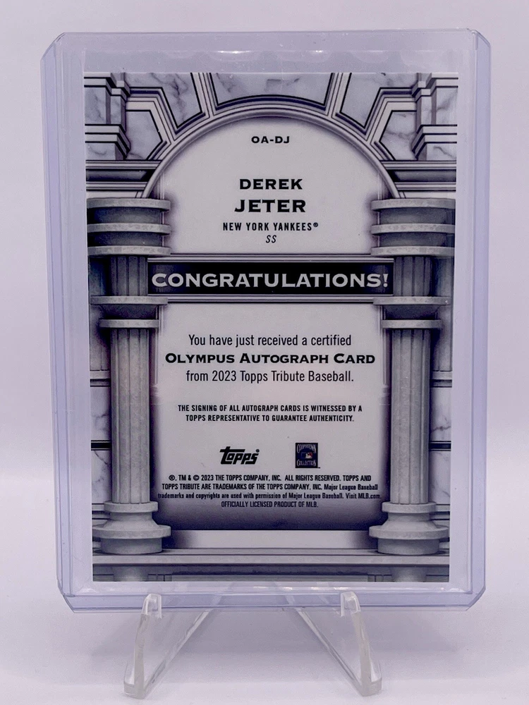This listing is for a 2023 Topps Tribute Olympus Derek Jeter numbered 71 out of 199. I take pride in ensuring every card is carefully packaged to arrive safely and in the condition shown in the listing. VERY SMALL BUBBLING ON THE BACK MIDDLE LEFT OF THE CARD. REFER TO PHOTOS. • Condition: Please refer to the photos for the exact condition of the card. • Shipping: I ship ASAP after payment is received. Your card will be securely packaged in a top loader and other protective packaging to ensure safe delivery. • Returns: I do not accept returns on this item, refunds may be issued under certain circumstances. Feel free to message me with any questions or concerns and I’ll do my best to get back to you asap. Thanks for looking, and happy collecting!