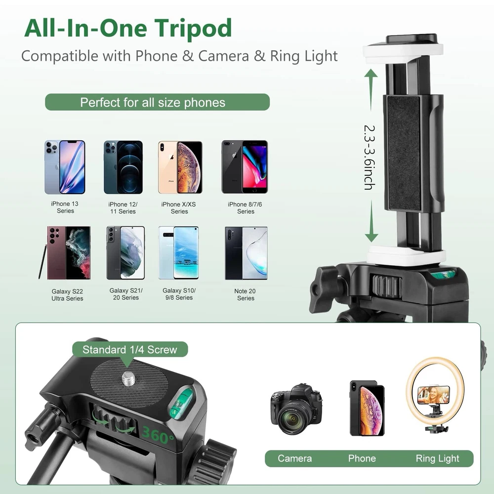 Compatible Brand:Universal, For AppleType:Tripodgtin13:Does Not ApplyItems Included:RemoteFeatures:Lightweight, Bluetooth Remote, StableColor:BlackItem Height:62”Mounting Location:GroundMounting Type:GripMaterial:AluminumBrand:TorjimUPC:Does Not ApplyNumber of Ports:3