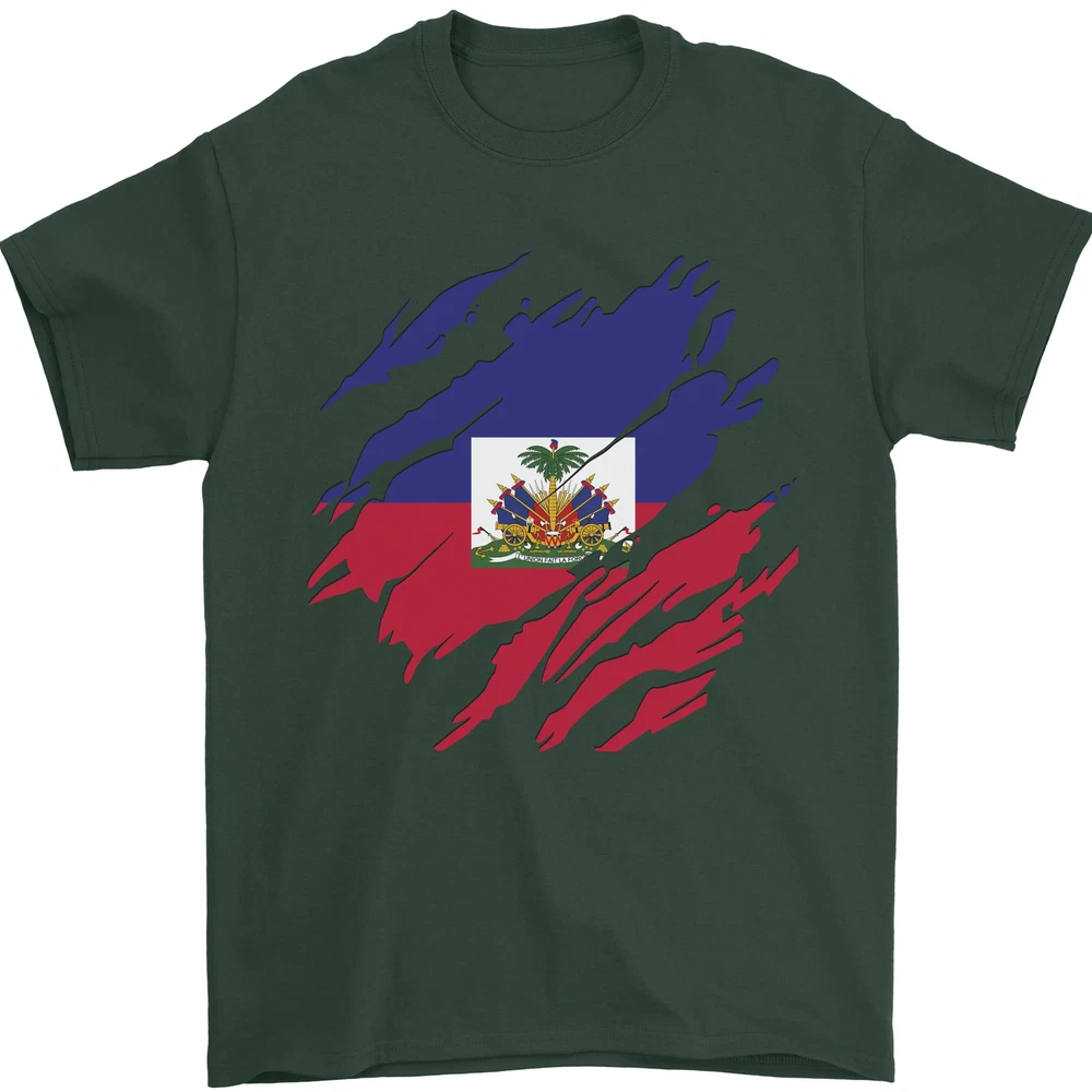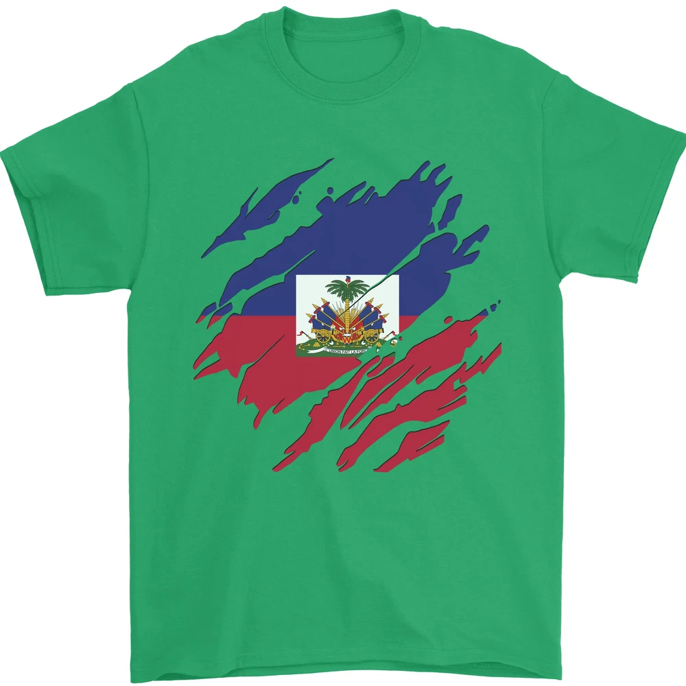 Torn Haiti Flag Haitian Day Football Mens T-Shirt 100% Cotton