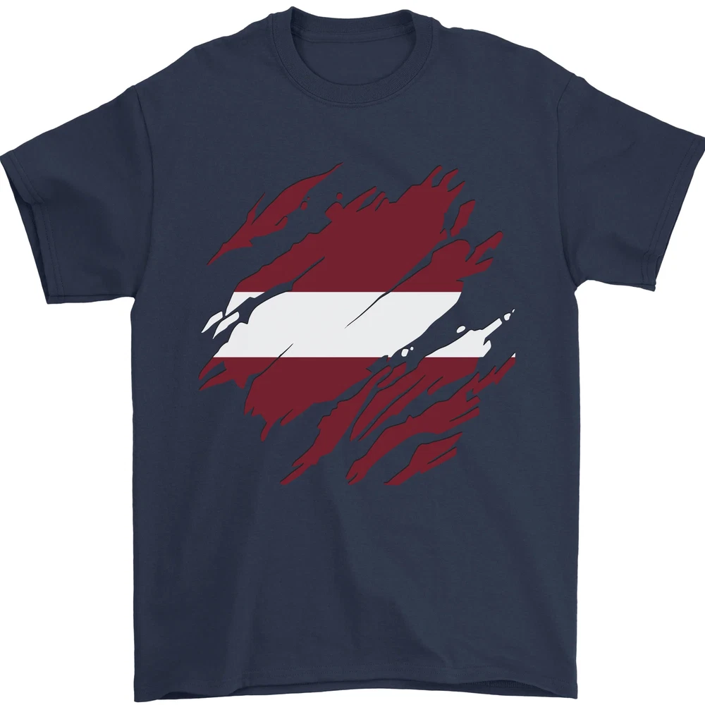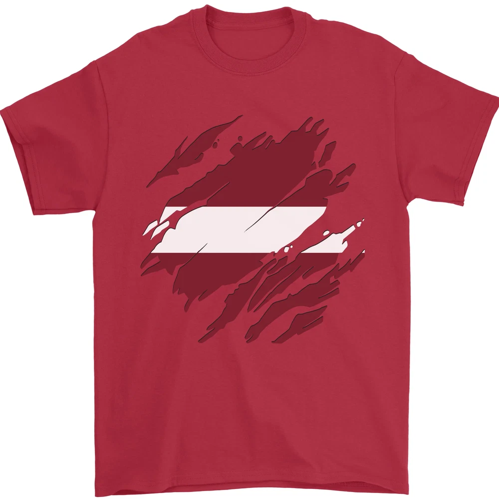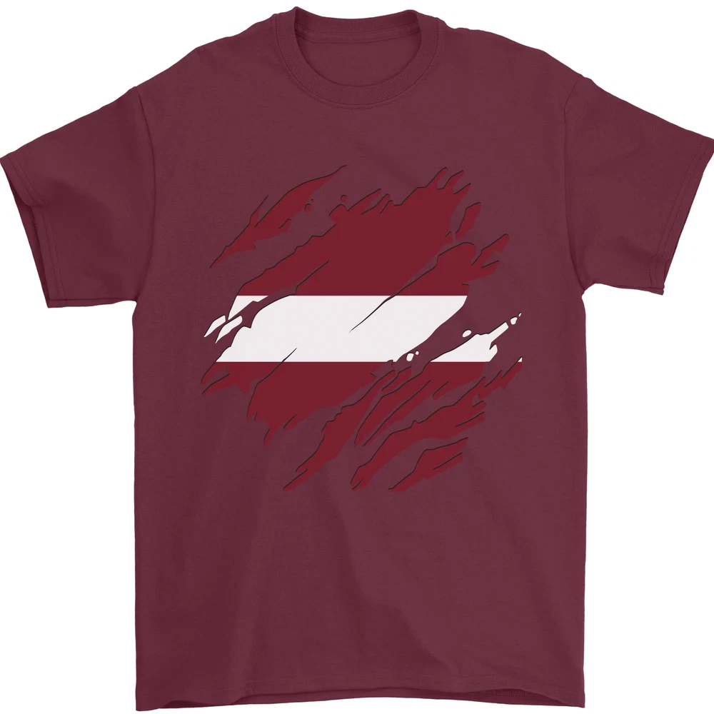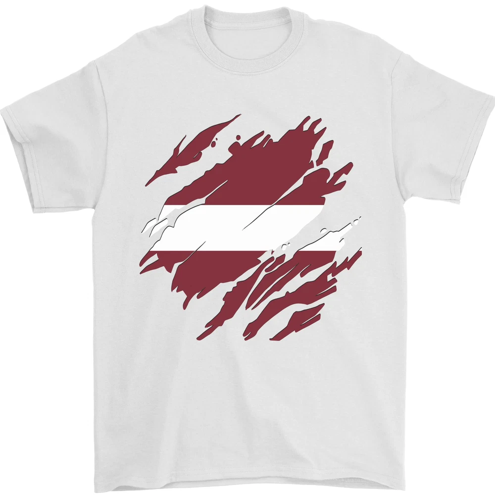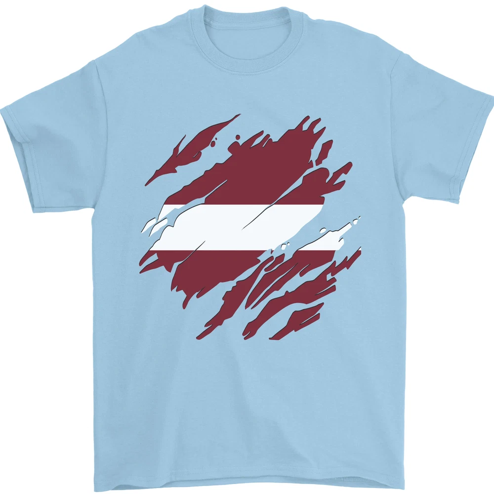 Torn Latvia Flag Latvian Day Football Mens T-Shirt 100% Cotton