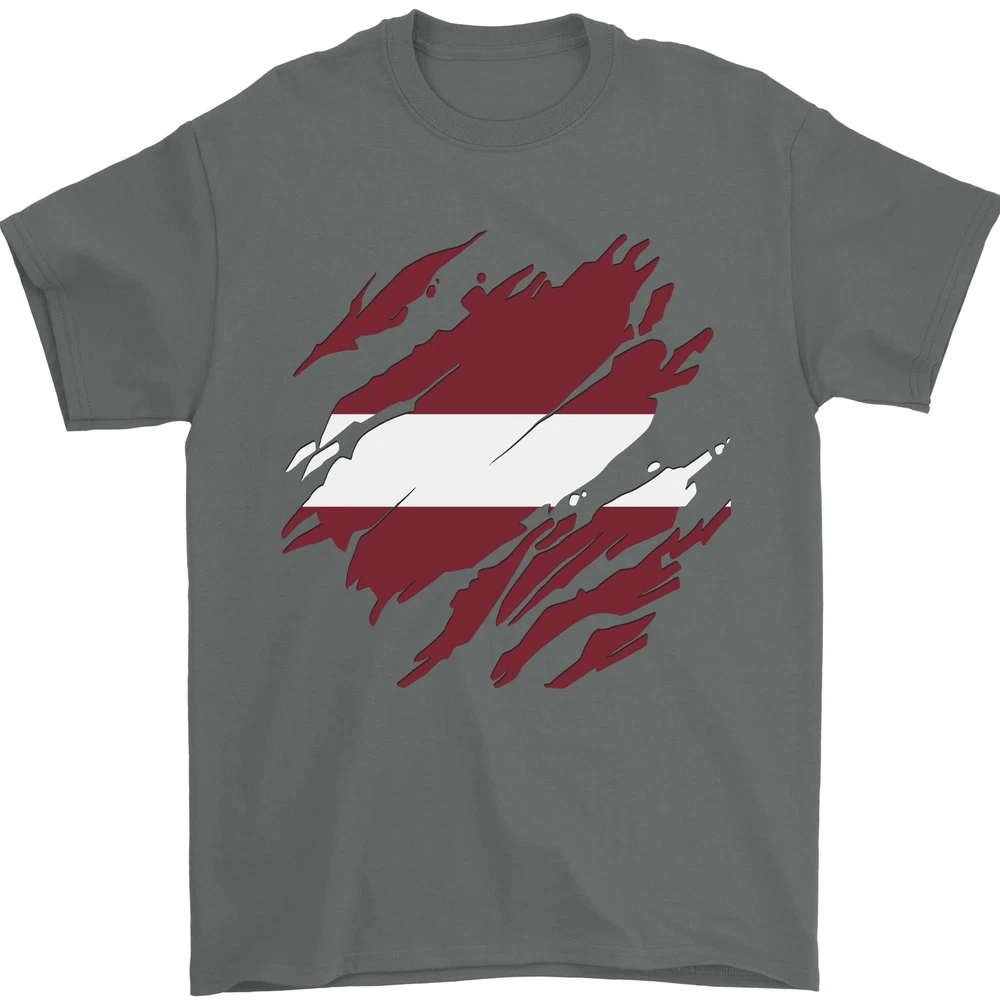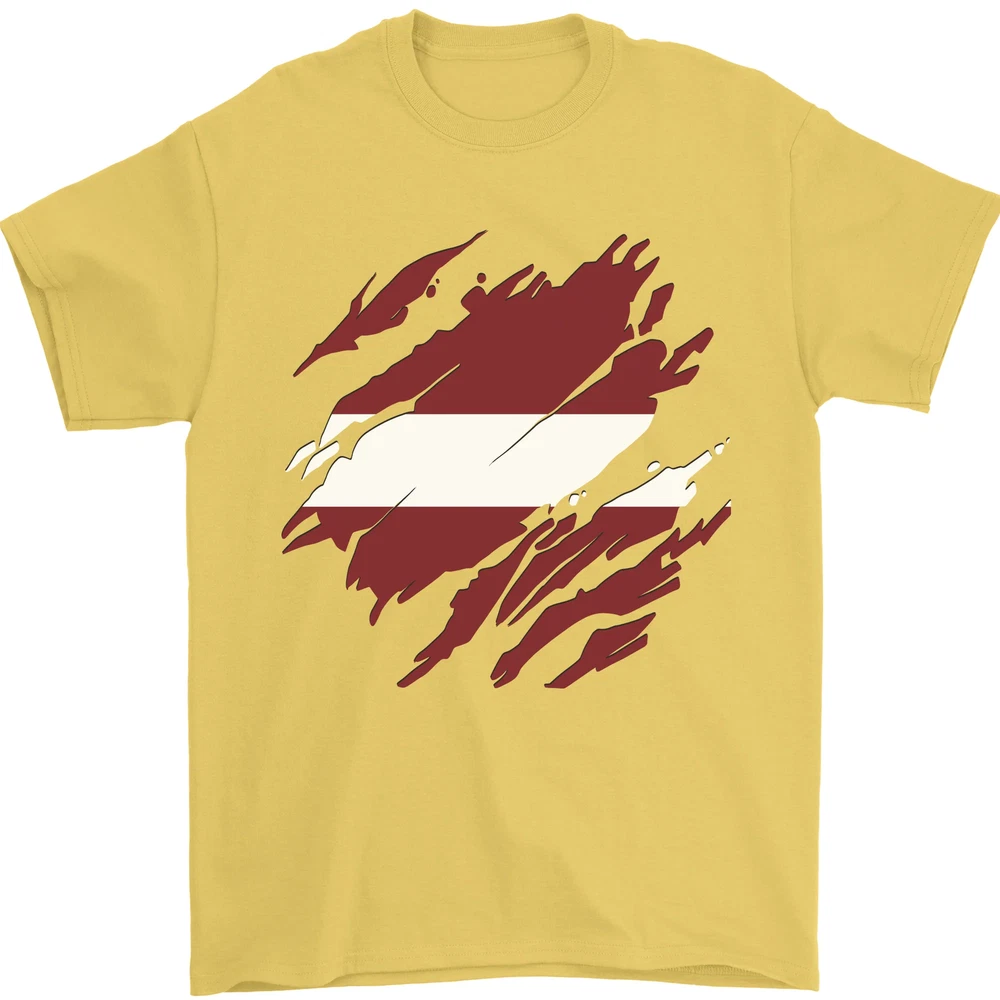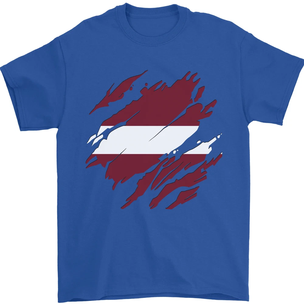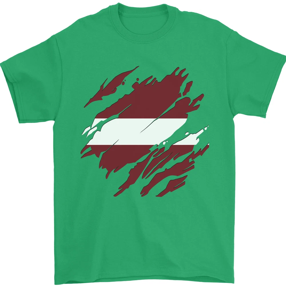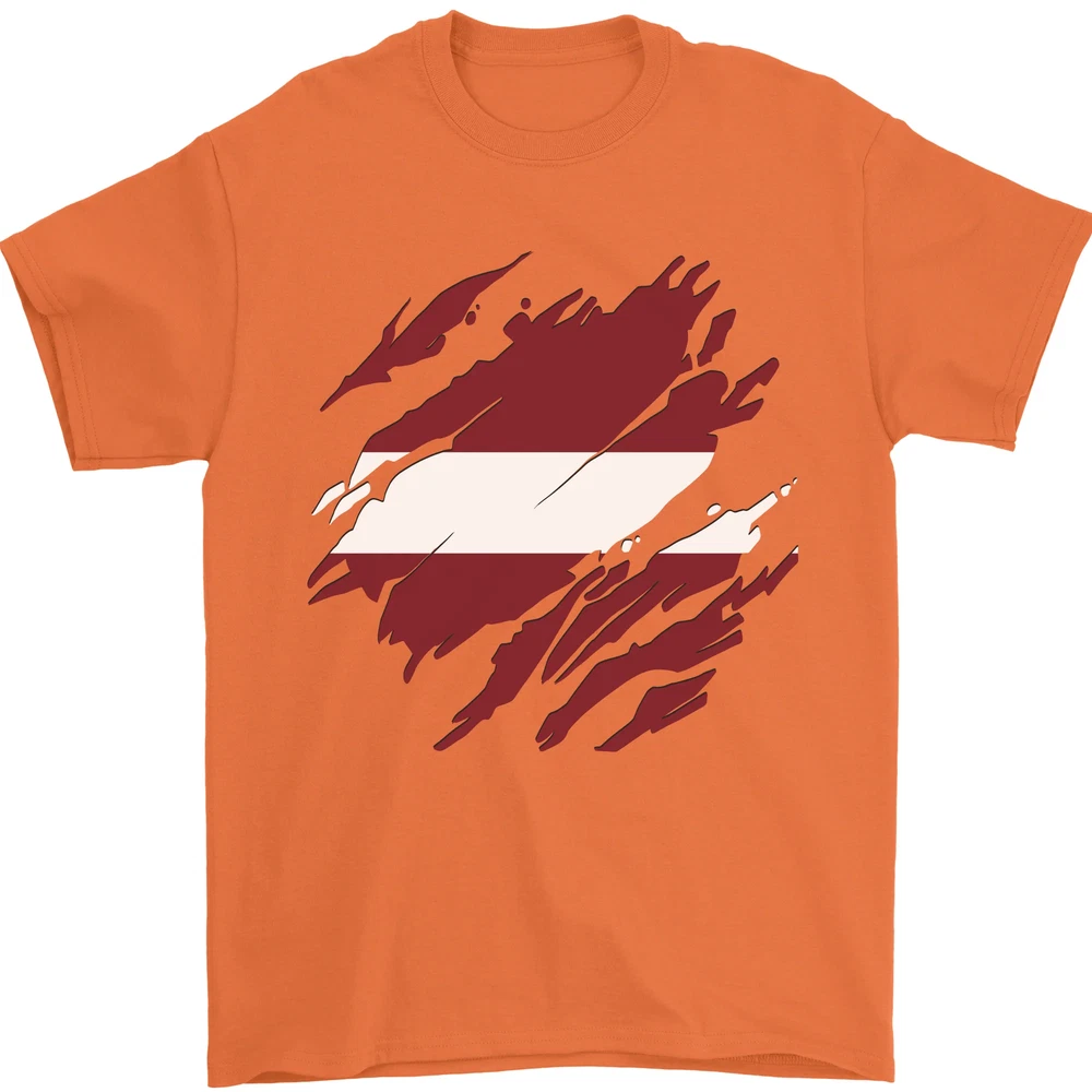 Torn Latvia Flag Latvian Day Football Mens T-Shirt 100% Cotton