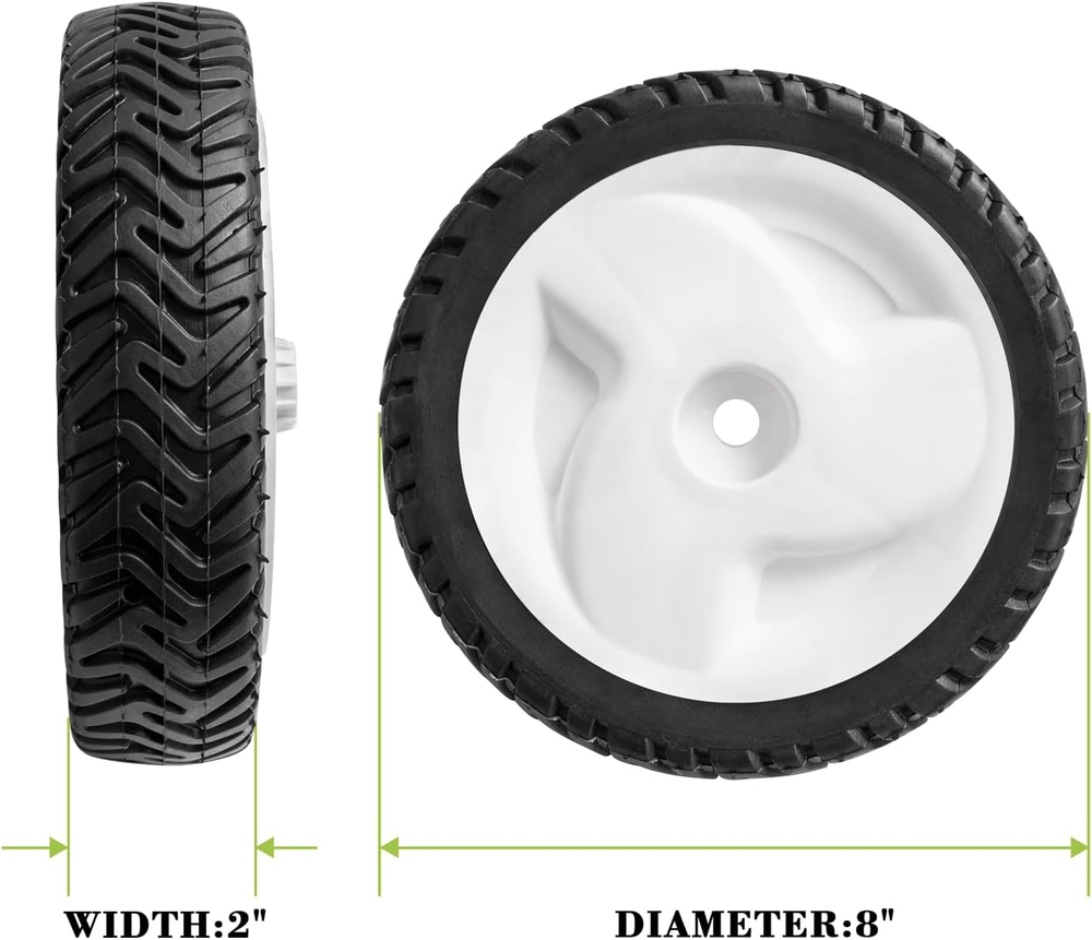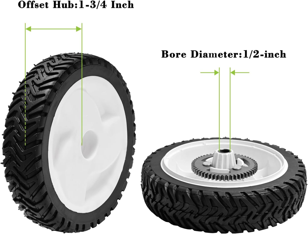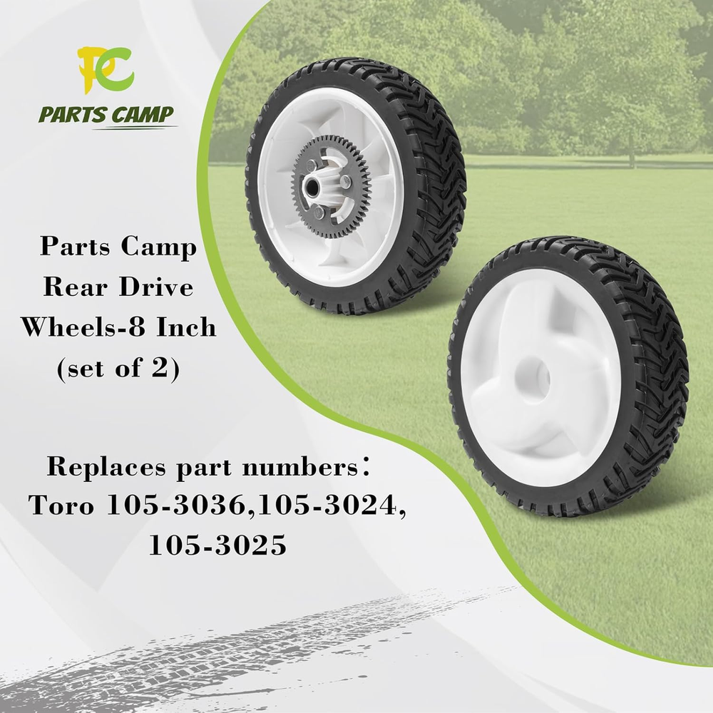 1. These rear drive wheels are a perfect fit for my Toro Recycler! They arrived quickly, feel sturdy, and roll smoothly. Installation was a breeze—just swapped them out, and my mower runs like new again. Great quality for the price, and they handle my yard with no issues. Highly recommend for a hassle-free replacement!