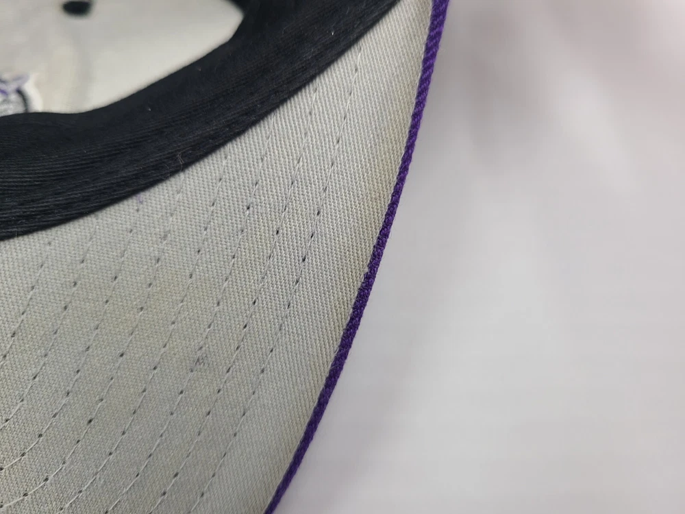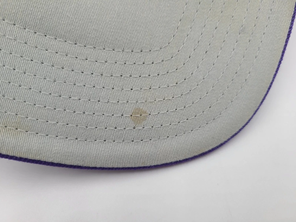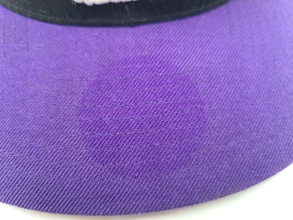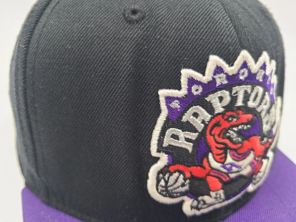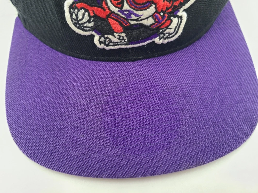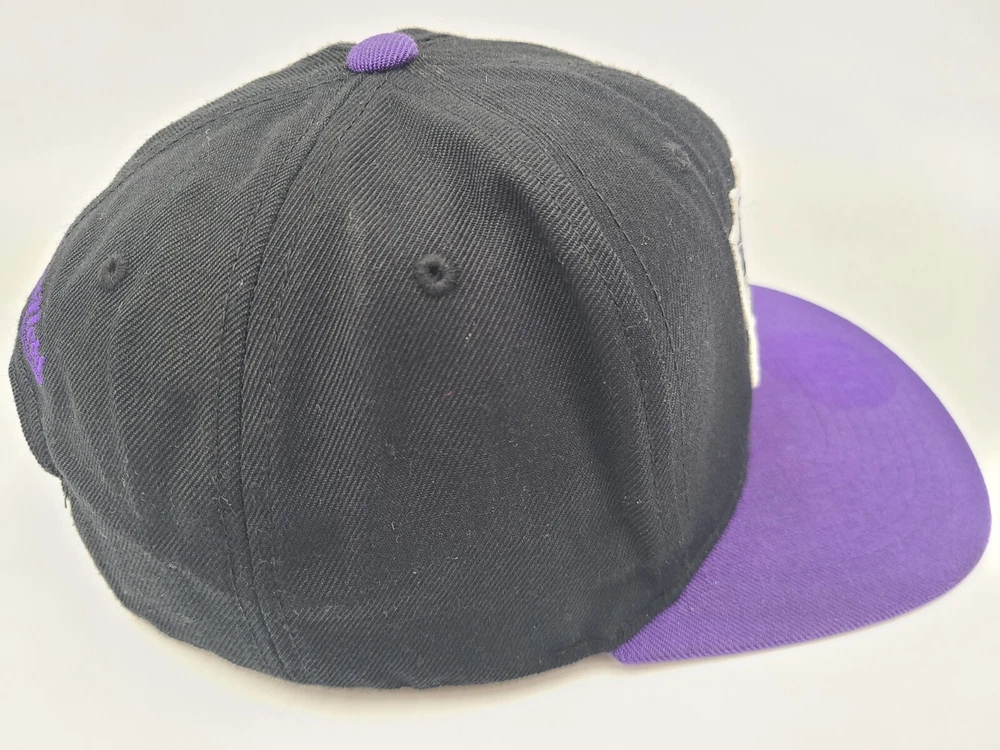The 1st pin on the snapback is broken and doesn't snap in as seen in photos. Has a mark left over from the sticker on the brim, creasing and scuffs on the front, scuffs on the side and back, and stains underneath the brim. Toronto Raptors Mitchell & Ness Hardwood Classics Snapback Hat Cap Black Purple. EACH ADDITIONAL HAT PURCHASED IS ONLY $1 ADDED SHIPPING!
