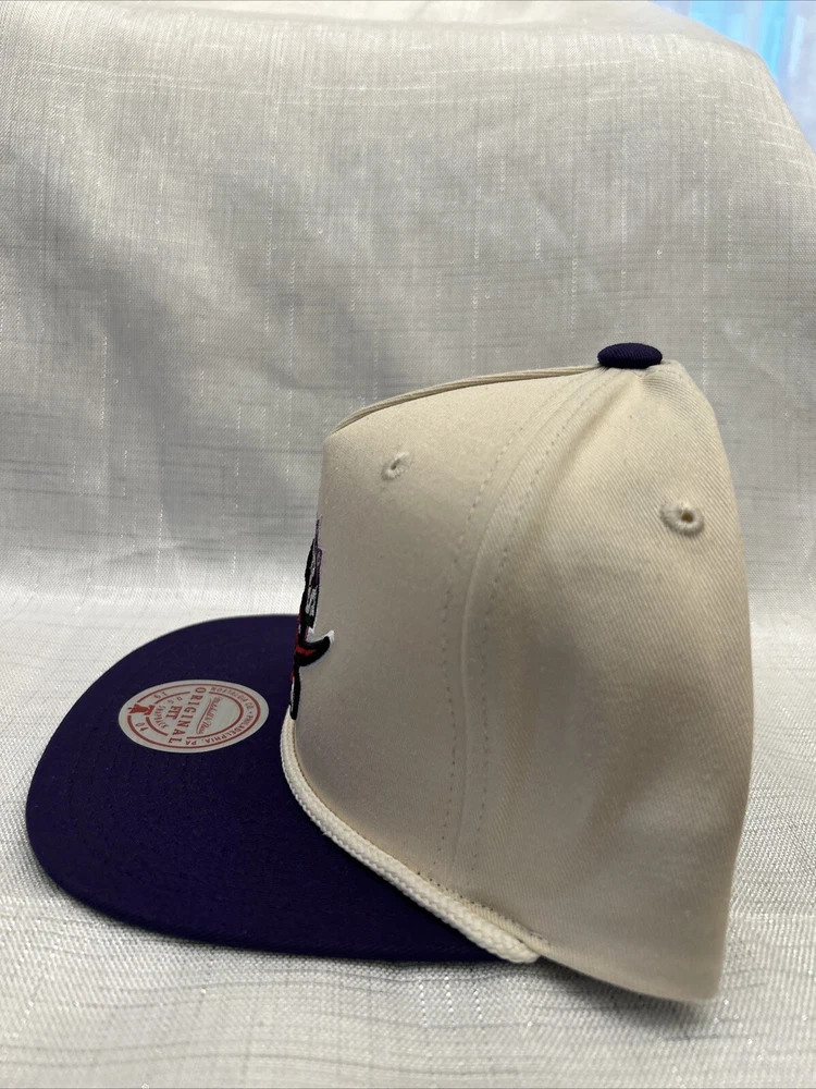 Show your love for the Toronto Raptors with this officially licensed Mitchell & Ness NBA Snapback Hat Cap. This white cap features the iconic Raptors logo and is perfect for any basketball fan. The snapback design ensures a comfortable and secure fit for all head sizes. Represent your favorite team in style with this Mitchell & Ness cap, perfect for game day or everyday wear. The hat is made with high-quality materials and is built to last. Get your hands on this Toronto Raptors NBA Snapback Hat Cap today and show your support for the team in style!