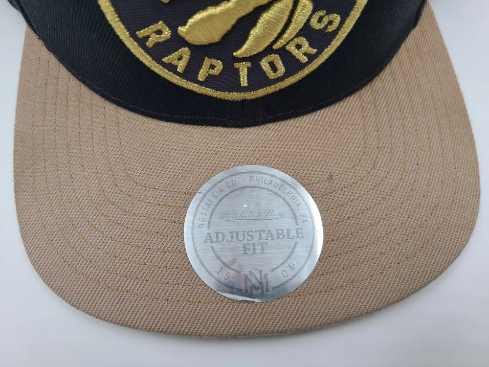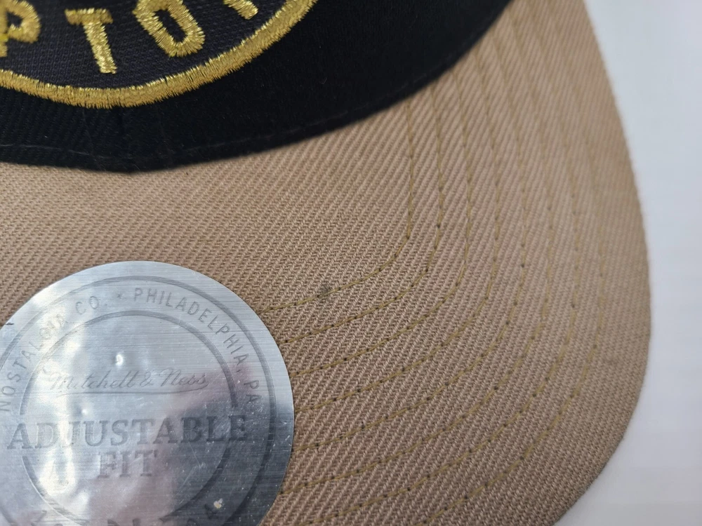 Has some scuffs on the brim and a mark left over from the sticker underneath the brim as seen in photos. Toronto Raptors Mitchell & Ness Snapback Hat Cap Men NBA Basketball Black Beige. EACH ADDITIONAL HAT PURCHASED IS ONLY $1 ADDED SHIPPING!