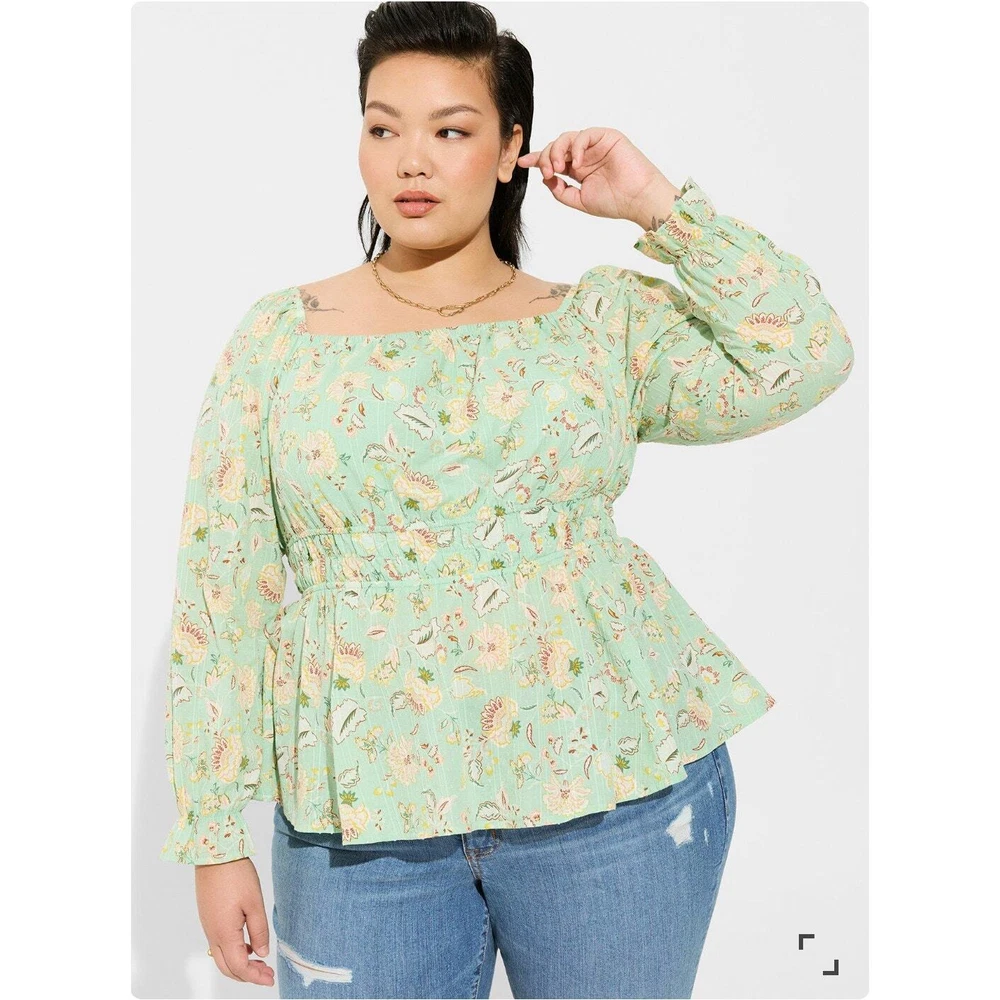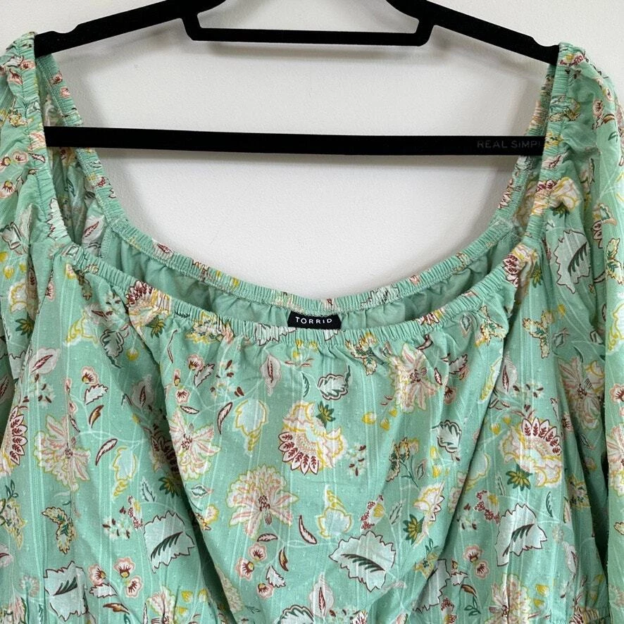 Torrid 4X Cotton Clip Dot Blouson Sleeve Smocked Top Green Floral Square Neck Square neckline. Ruffle trim. Shirred bust. Cinched waist. Blouson sleeves. Size: 4X Approx. measurements: 27" across (pit to pit), 28" long (shoulder to hem) Condition: Pre-owned excellent. Pre-loved and in gently used condition. Light wear. no stains, rips, or holes. - see all pics for any wear/condition - From Smoke Free Environment - Item shown the exact item you will receive. ** Be sure to Follow us, We post several shoes / items often, and offer discounts when you bundle. **SHIPS FROM CHICAGO, ILLINOIS :) boho, bohemian, cottage, plus size, feminine, regency, classic, casual