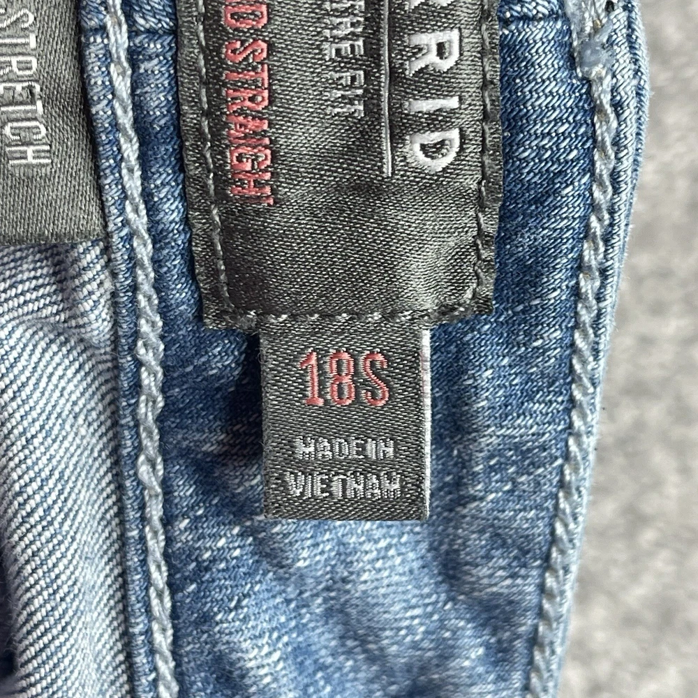 Size Type: Plus Seller Notes: “In excellent, pre-owned condition with no flaws to note.” Garment Care: Machine Washable Material: Cotton Blend Closure: Zip Brand: Torrid Inseam: 26.5 in Fit: Regular Type: Jeans Vintage: No Rise: Mid (8.5-10.5 in) Size: 18 Waist Size: 38 in Style: Straight Fabric Wash: Light Department: Women Features: Stretch Season: Fall, Spring, Summer, Winter Pattern: Solid Color: Blue Fabric Type: Denim