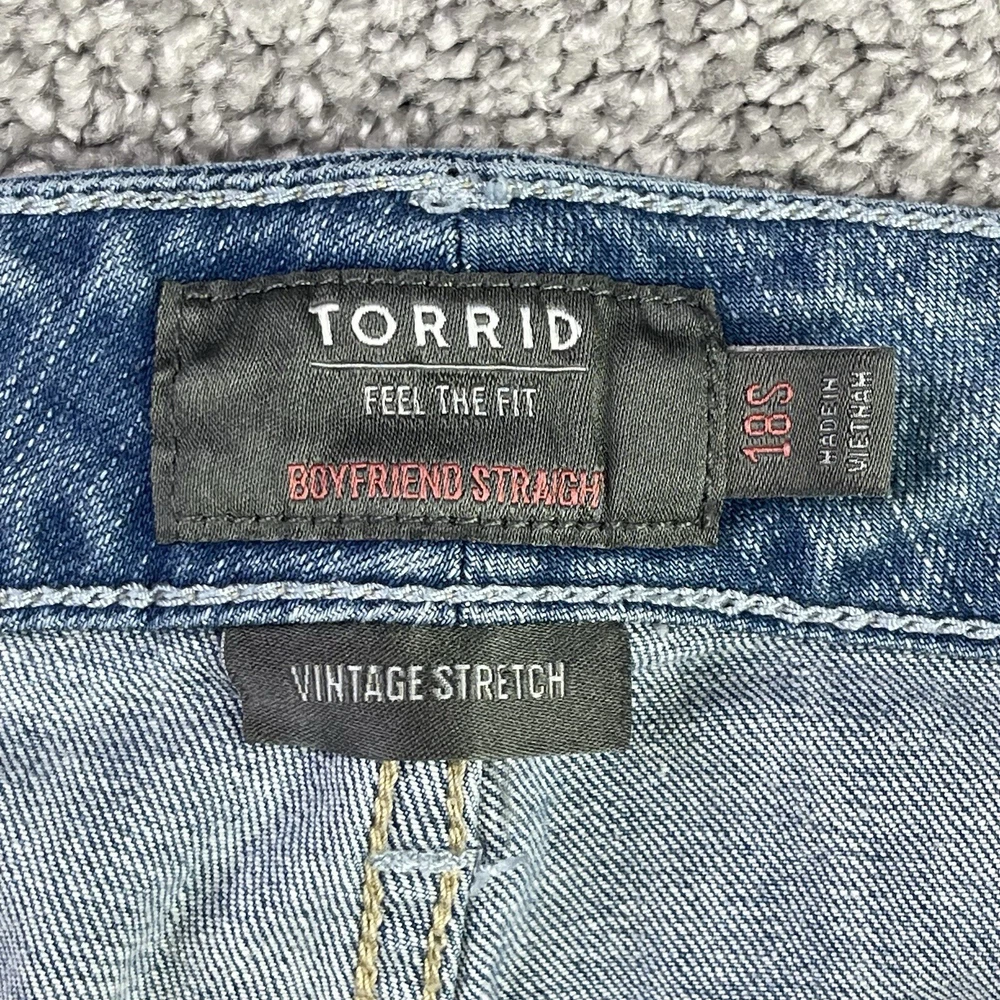 Torrid Jeans Women's 18 Short Blue Light Wash Boyfriend Straight Ripped Stretch