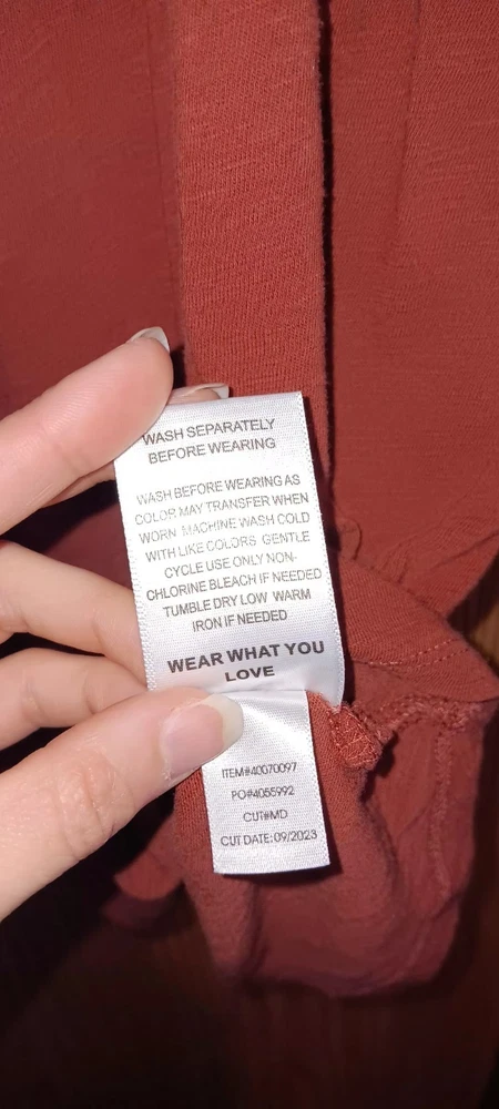 the Catherine tunic arrived quickly in a bag. Just as pictured. Very nice shirt which can be worn buttoned or layered and left opened. Multiple uses.