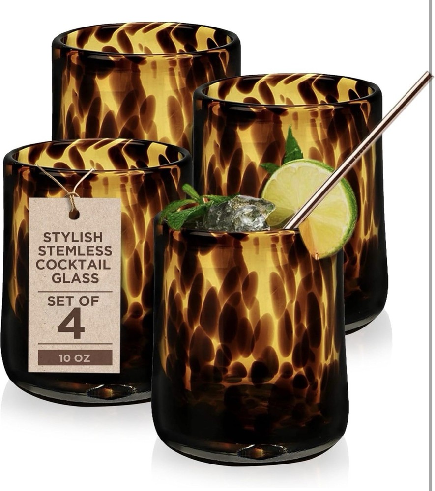 These cocktail glasses are absolutely stunning! The hand-blown design gives each one a unique, artsy touch, and the tortoise theme adds a playful yet elegant vibe. Perfect for entertaining or just sipping your favorite drink at home. The colors pop beautifully, and the quality feels premium—definitely worth the hand wash care. A must-have for anyone who loves stylish glassware!