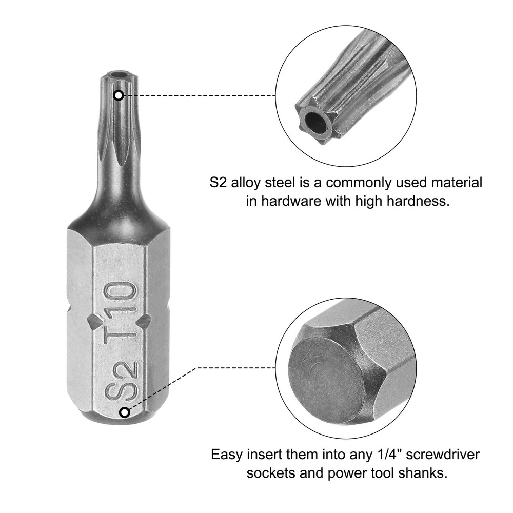 Torx Bits 1/4" Magnetic Screwdriver T10 Screw Driver Bit S2 Alloy Steel 25pcs