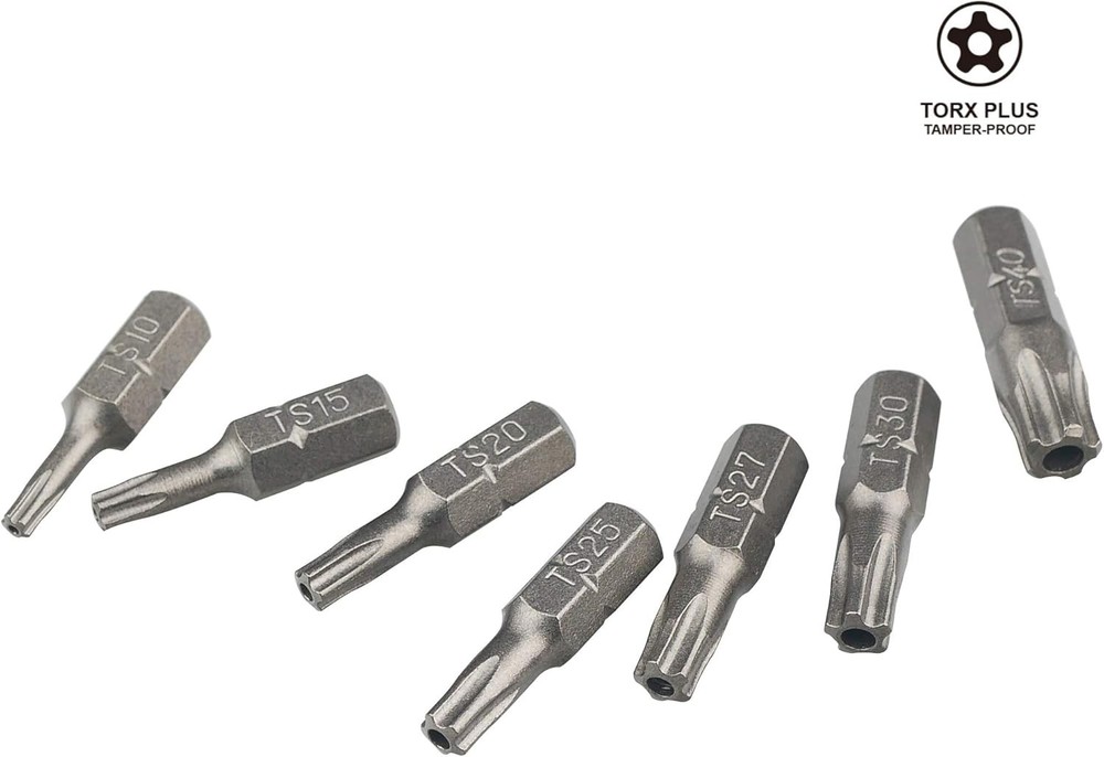 K001 Torx Plus 5-Point Tamper-Proof Security Bit Set, 7-Piece K001 Torx Plus 5-Point Tamper-Proof Security Bit Set, 7-Piece FREE AND FAST SHIPPING! About this item Five-point head and hole for security fasteners This set matches for most standard tamper resistance star 5-point screws as opposed to the common 6-point Mercedes, Porsche, Volvo some Ford and Chrysler cars/trucks use 5-point fasteners of transmissions, air sensor or injector pumps 1/4-inch shank hex bits in sizes: TS10, TS15, TS20, TS25, TS27, TS30, TS40 Product We offer a 30-Day Return Policy on items which you are not completely satisfied with. You have the option for a full-refund or an exchange of the item. No returns are available on items shipped outside of the US . Shipping We offer Free Shipping to the US and ship within 2 business days of payment, usually sooner. We use UPS express shipping. That's why your products are usually delivered within 3 days . Contact We try our very best to make sure every customer is completely satisfied. If there's a problem , message us! We're happy to help. 24/7 live chat available.