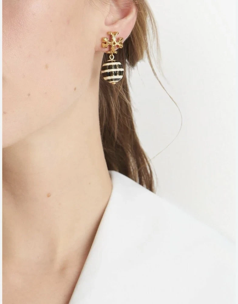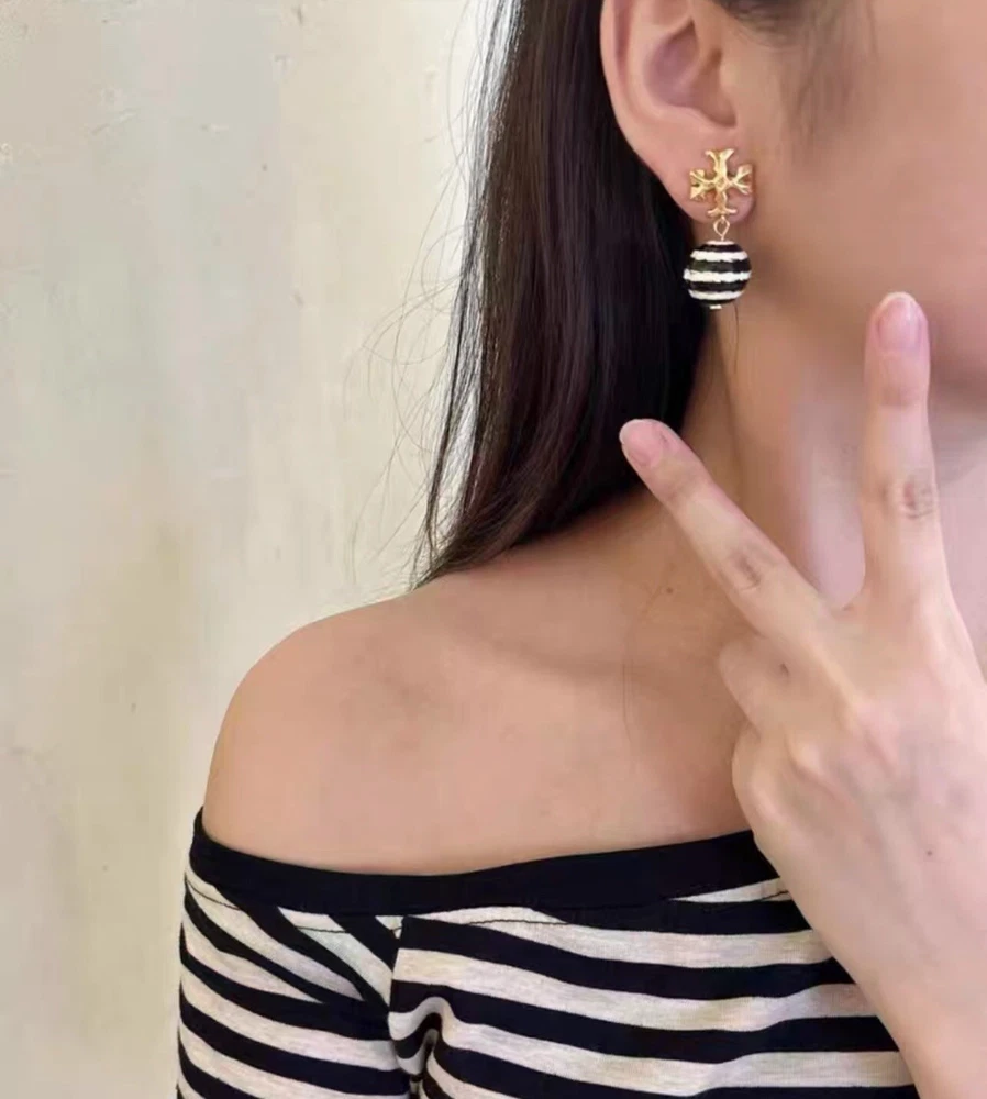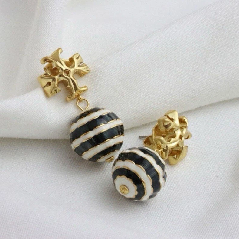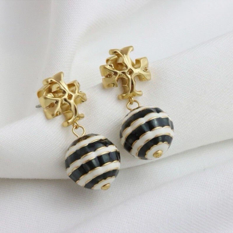 Country of Origin: China Ear Area: Lobe Type: Earrings Color: black and white Material: Enamel Brand: Tory Burch Style: Stud, Dangle/Drop