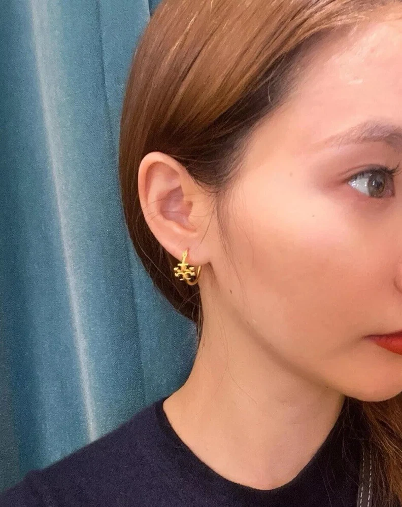 Tory Burch Double T Logo Mate Gold Color Kira Small Size Hoop Simple Elegant