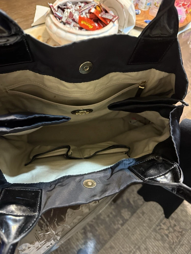 Vintage Dooney & Bourke Small Tassel Tote Canvas Handbag Beige Signature Logo