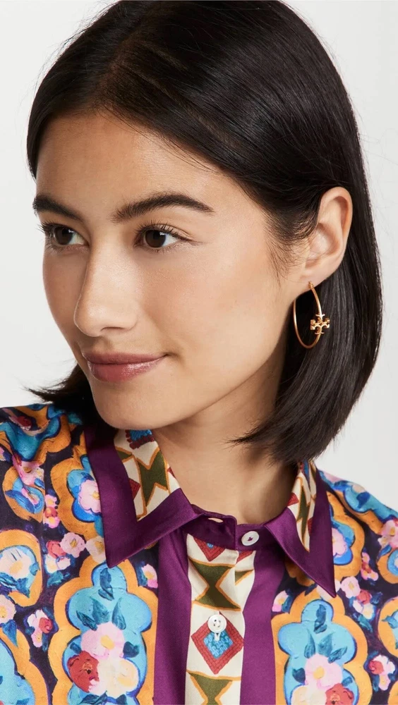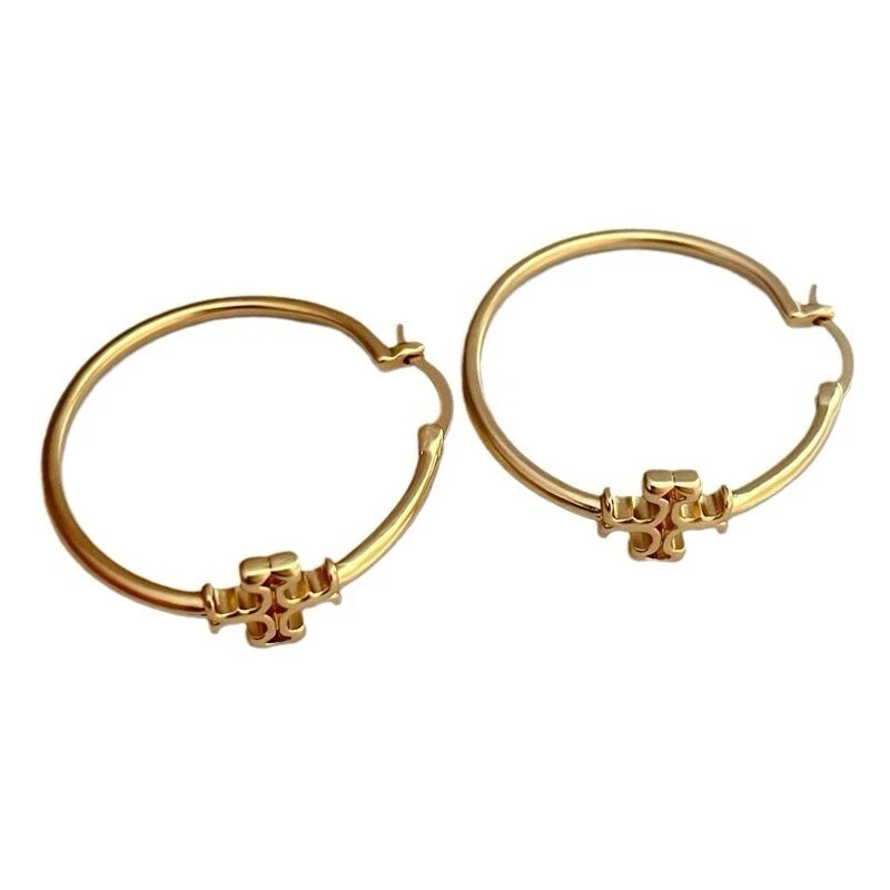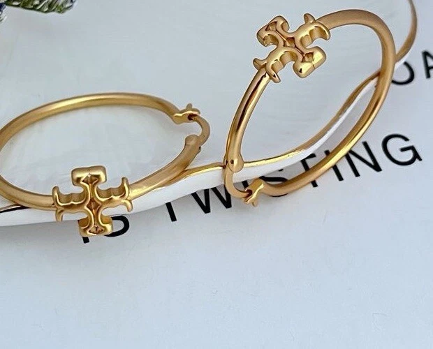 Tory Burch Kira Logo Hoop Earrings Classic Logo Lady Perfect Gift