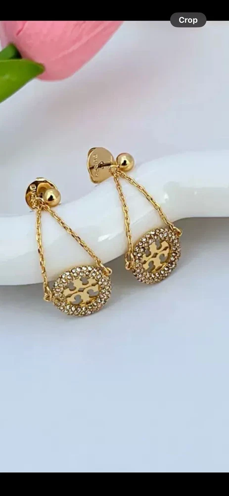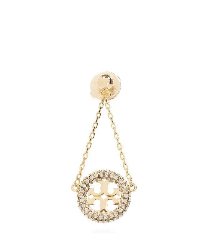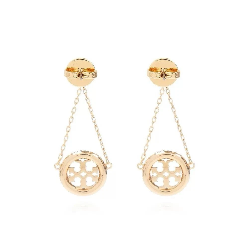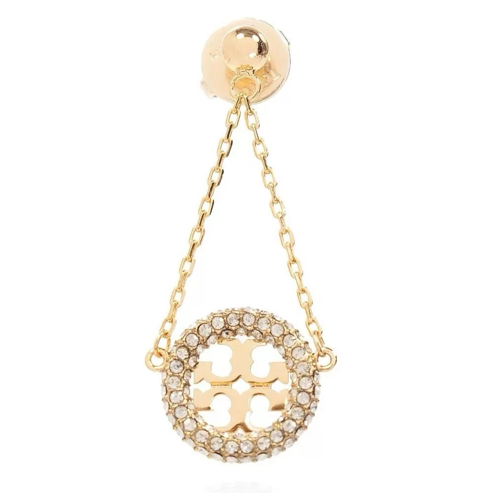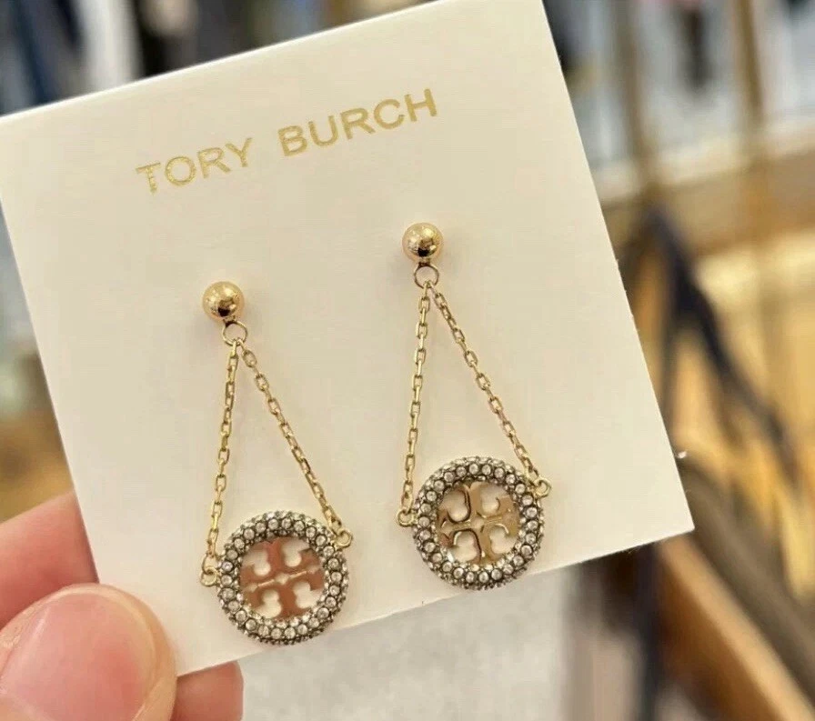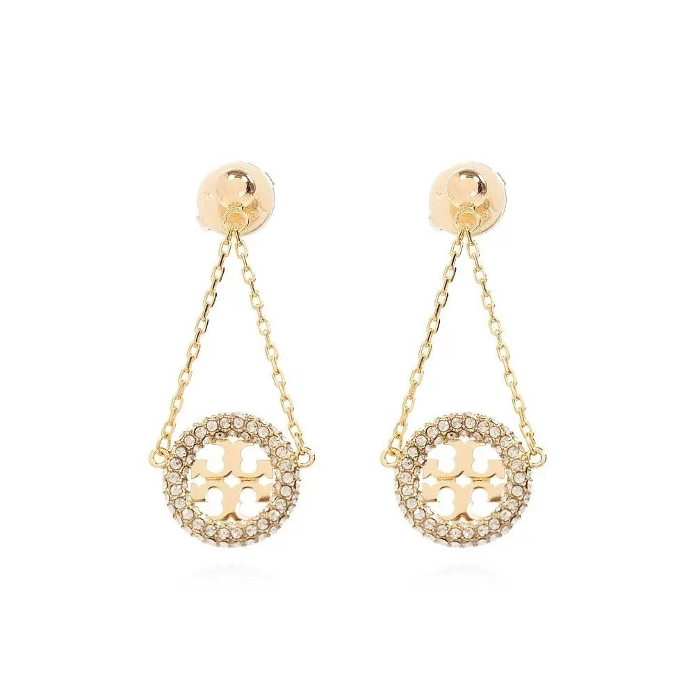 Tory Burch Lady Crystal Earrings Classic Double T Logo Elegant Fashion