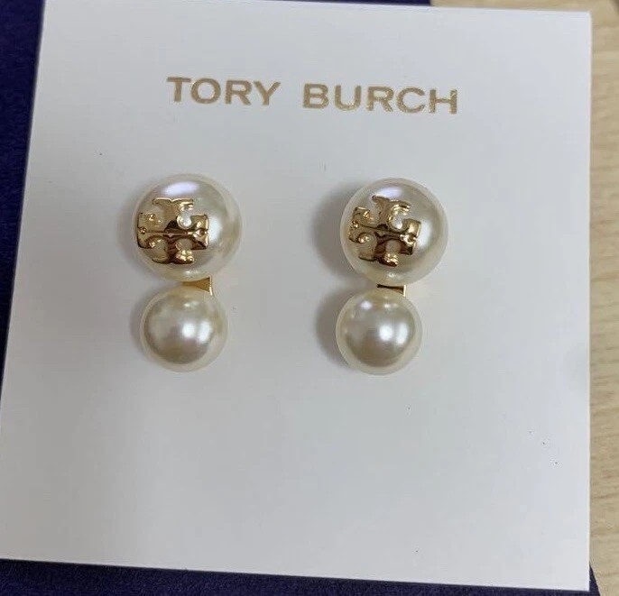 Tory Burch Lady Double Pearl Earrings Classic Double T Logo Stud Perfect Gift