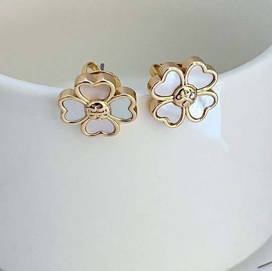 Tory Burch Lady Nature Shell đ Stud Clover Shaped Romantic Fashion Earrings. Condition is New with tags. Shipped with USPS Ground Advantage.