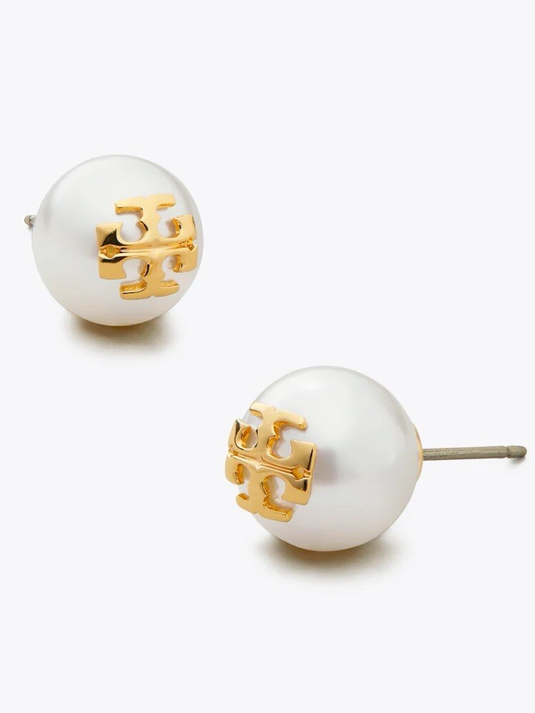 Tory Burch Lady Simply Pearl Stud Earrings Classic Timeless Elegant Jewelry