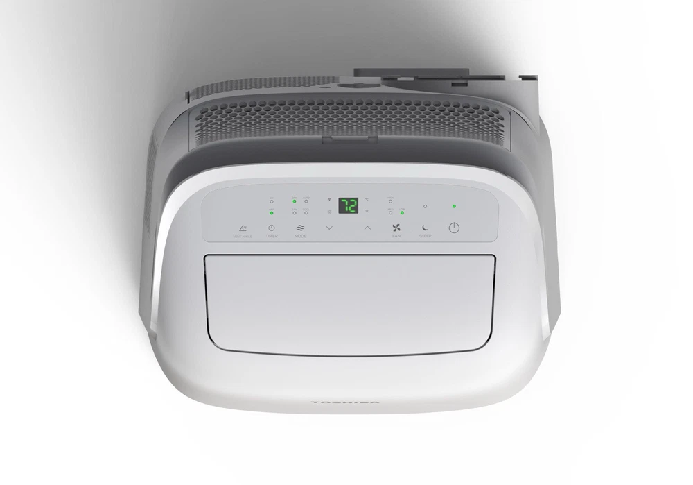 The Toshiba portable air conditioner has the cooling power you need to cool, dehumidify or circulate air up to 250 sq. ft. while removing up to 2.5 pints of moisture from the air each hour. You can control using the LCD remote control or the integrated electronic control panel and display. The unit also has a compact, light and modern design for quick and easy installation in most vertical or horizontal windows so you can move it around from room to room using the 4 integrated wheels. Intelligent features such as the 24-hour Timer, Sleep Mode and the automatic vent angle for better air distribution help you to personalize your comfort. You can cool, dehumidify or circulate the air in the space you need. *Perfect for a 150 to 250 square foot room* *Quick and Easy Installation* *Included easy to use Remote Control* *Cools, dehumidifies, and circulates air* *24 Hour Timer and Sleep Mode* *Louver Auto Swing* Specifications: Power Supply 115V Cooling Area- Up to 250 sq. ft. Plug Type- 5-15 P Control Type- Electronic Refrigerant- R-32 Color- White Capacity- 8000 BTU / 6000 SACC Rated Input- 1110 W Current- 11 Amps Product Dimensions (in) W*D*H- 18.39in x 15.63in x 30.12in Package Dimensions (in) W*D*H- 20.28in x 17.32in x 35.04in Net / Gross Weight- 59.15lbs / 68.83 lbs