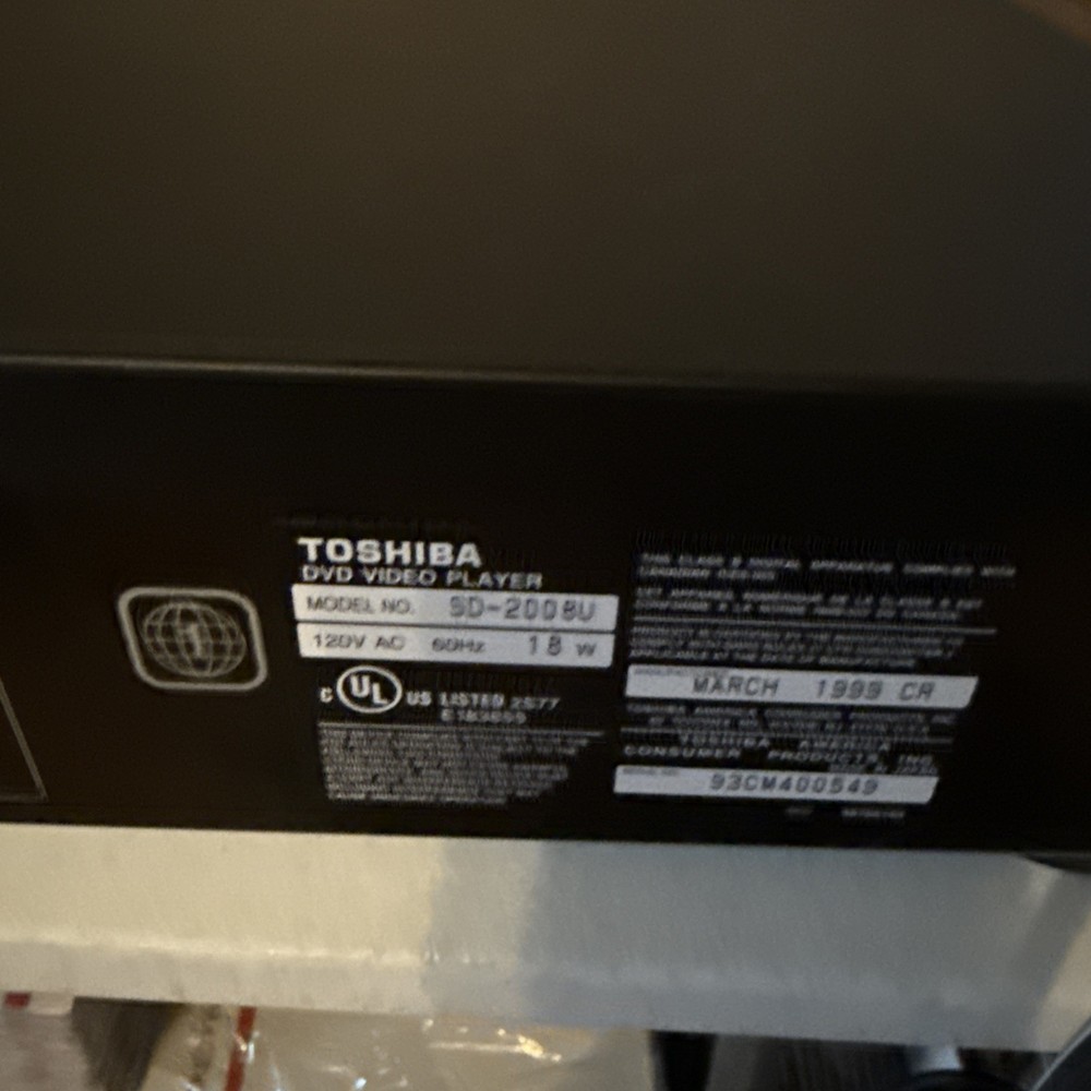 This Toshiba SD-2008U DVD Player is a great addition to your entertainment system. It has been tested and is in working order, although it does not come with a remote. You can enjoy your favorite movies and music with this versatile player, which is compatible with DVD and CD formats. The player also features Composite Video RCA outputs for easy connection to your TV. The Toshiba SD-2008U is a reliable and affordable DVD player that is perfect for anyone looking to enhance their home entertainment experience. With its sleek design and compact size, it can fit seamlessly into any setup. Get ready to enjoy your favorite media with this Toshiba DVD Player.