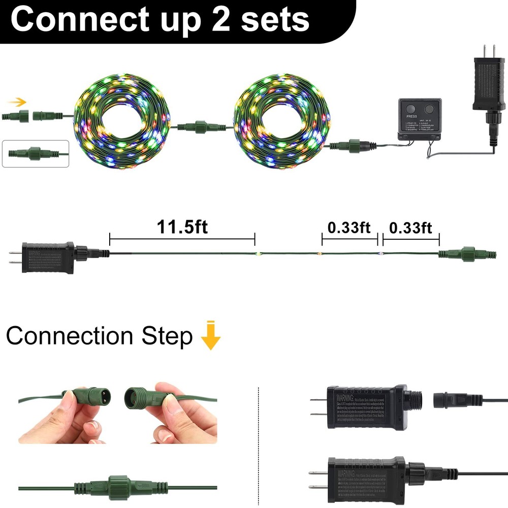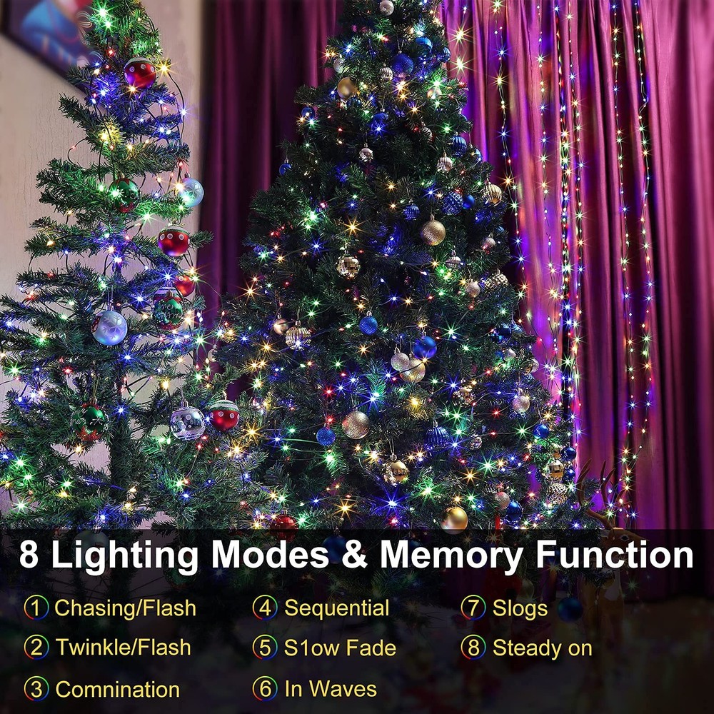 These Christmas lights are absolutely stunning! The 300 LEDs are super bright with 360° lighting, making them perfect for both indoor and outdoor decorations. The 8 different modes add a festive touch, and I love how easy they are to connect end-to-end. The sturdy green wire and unmovable bulbs ensure durability—no worries about loose or broken lights. Perfect for trees, weddings, or parties! Highly recommend for anyone looking to create a magical holiday atmosphere.