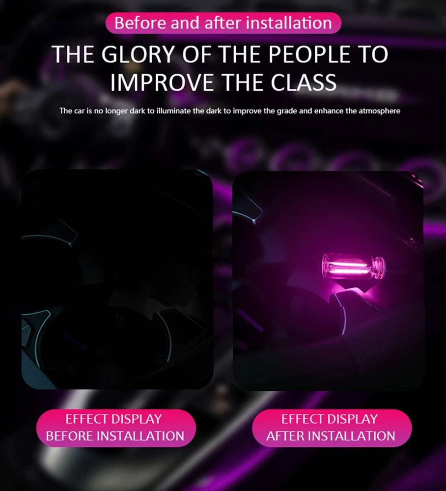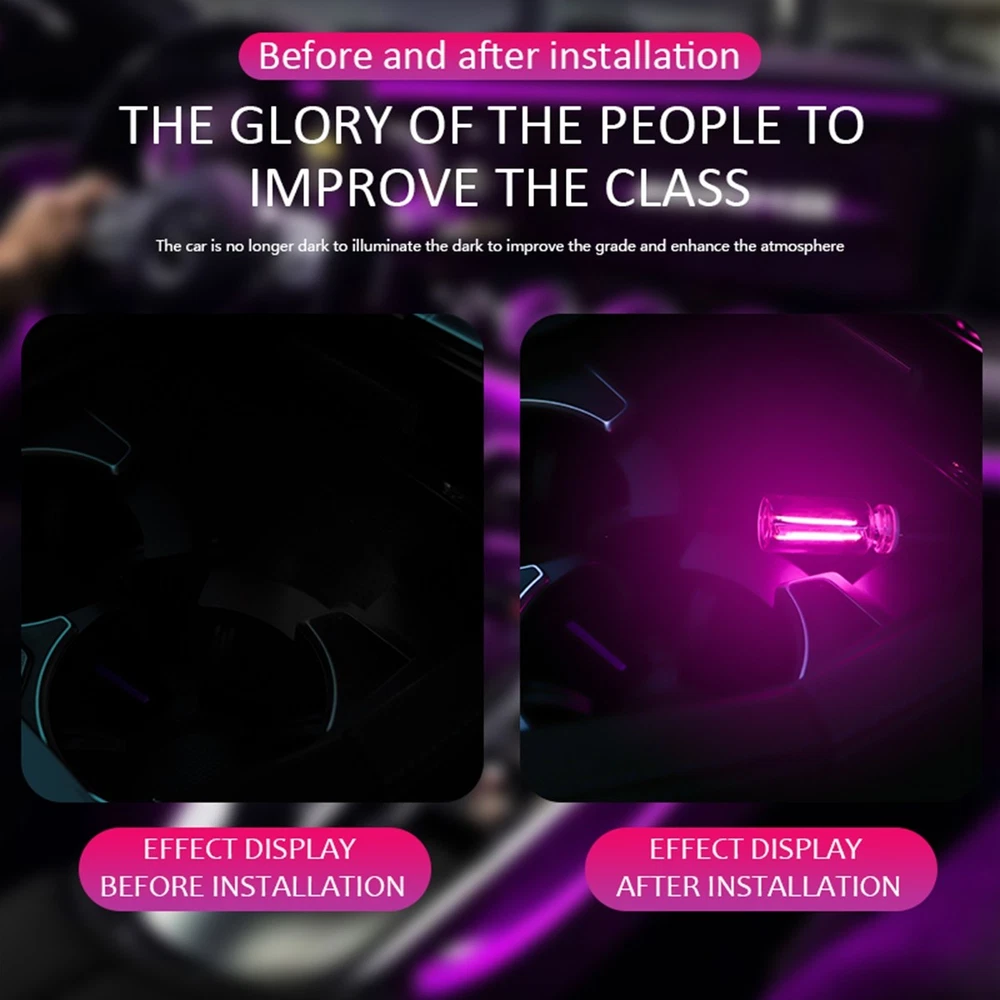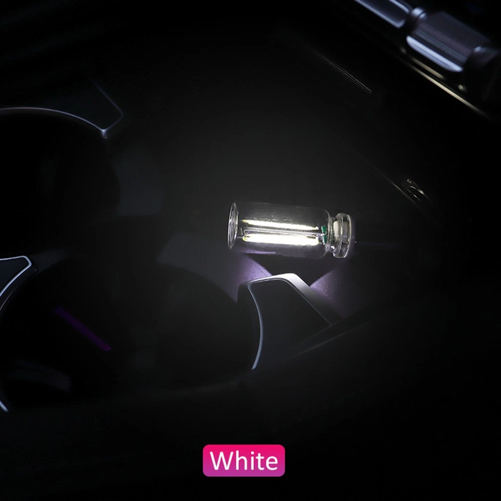Features: USB & Glass Bottle Fusion Design: Elevate your car's ambiance with our innovative USB glass bottle night light, blending modern aesthetics with functionality. The transparent glass elegantly showcases the inner LED light bar, creating a mesmerizing glow. Its compact and portable size fits perfectly in cup holders or dashboards, adding a stylish touch to any vehicle interior. USB Plug-and-Play Installation: Designed for hassle-free setup, simply plug the light into your car’s USB port-no wiring or tools needed! The universal USB compatibility ensures instant illumination, making it ideal for quick upgrades. Perfect for those who want instant ambiance without complicated installations. Ambient Lighting: Transform your car into a cozy, romantic space with soft lighting. Whether it’ s a date night, road trip, or solo drive, the warm glow enhances the atmosphere, turning ordinary moments into memorable experiences. A must-have for creating vibes on the go! Gentle Light Glow:Featuring low-intensity, non-glare LEDs, this light provides just enough illumination to enhance visibility without distracting the driver. Beyond the car, it doubles as a bedside nightlight-perfect for bedrooms, dorm rooms, or cozy corners. Touch Control: Customize your lighting experience with intuitive touch controls. The dimmable feature lets you set the perfect mood, from subtle accent lighting to a brighter glow. Versatile and user-friendly for any setting! Specifications: Product name: Car USB Glass Bottle Night Light Material: Glass/LED Light/Metal Color: Blue/Red/Purple/Green/Pink/Yellow Product size: as shown Package includes: 1 x Car USB Night Light 1 x instruction manual