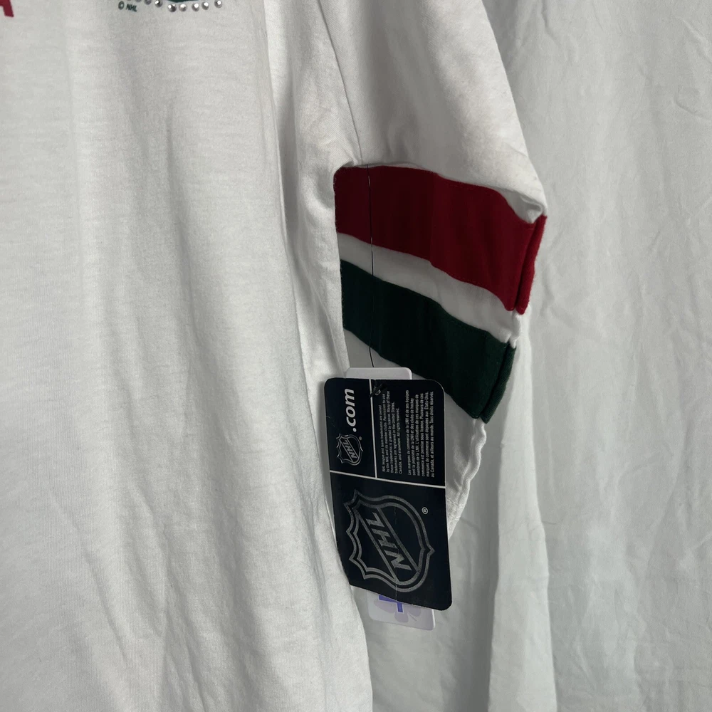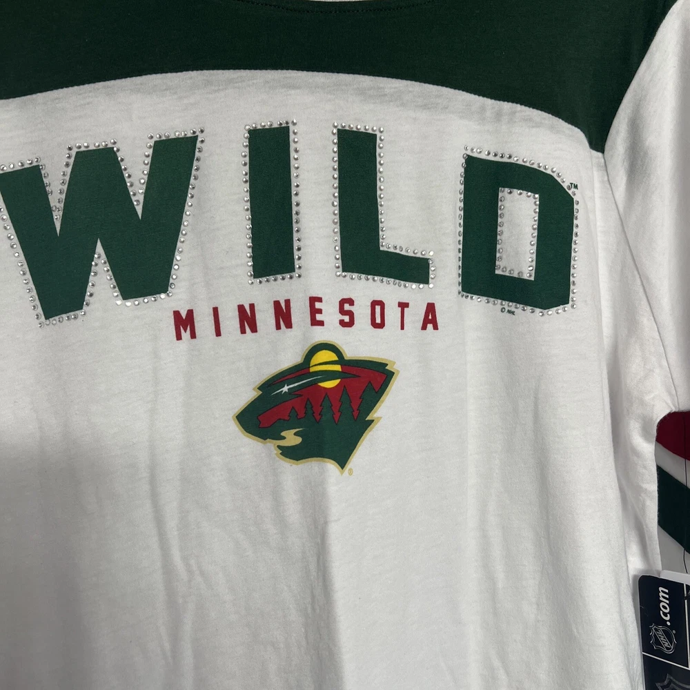 Support your favorite NHL team with this stylish Touch Alyssa Milano 3/4 Sleeve Hockey T-Shirt. This shirt features the Minnesota Wild team colors and logo on the front, making it a perfect addition to your fan apparel collection. The shirt is designed for women and comes in size L, making it comfortable to wear during game nights or any other occasion. The shirt is brand new with tags, making it a perfect gift for any Minnesota Wild fan. The shirt is made of high-quality materials that are sure to last for a long time. Add this shirt to your collection today and show off your love for your favorite NHL team. SKU: P 15