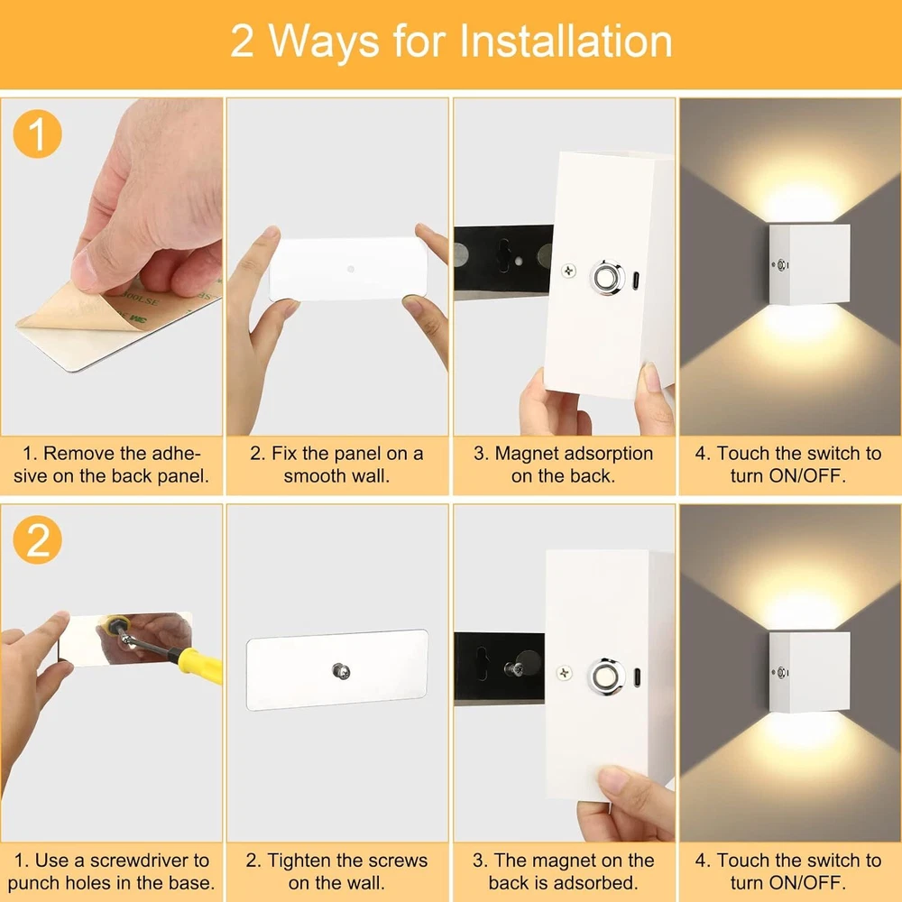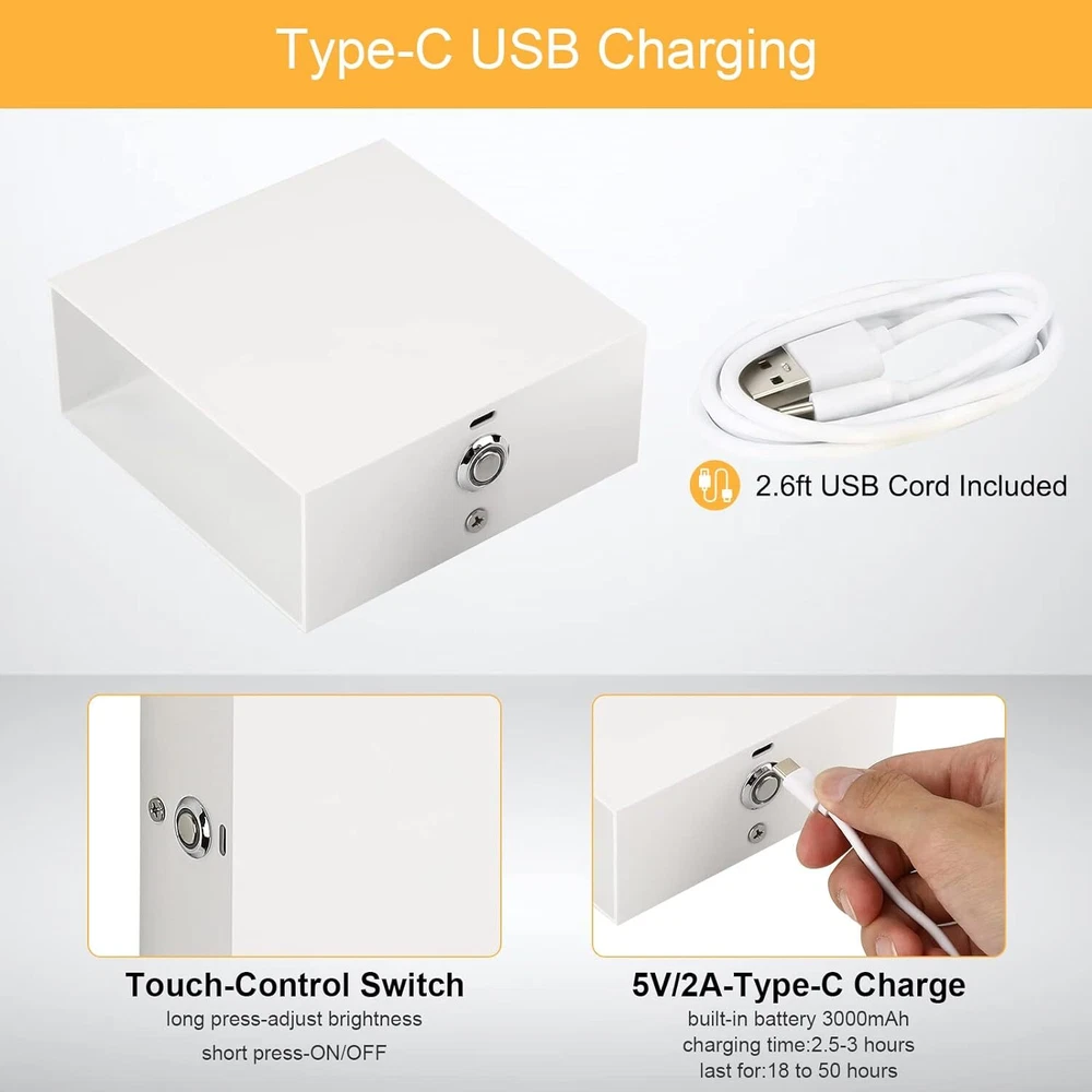 eBay DESCRIPTION PAYMENT SHIPPING RETURN POLICY Customer Services Shop Category Hot Item RGB Battery Operated Sconce with Remote Dimmable LED Wall Light Rechargeable USD 23.69 Picture New List Item Lampop Wall Lights Rechargeable Wall Lights Battery Wall Lamp Dimmable Sconce USD 20.19 Lampop Led Wall Light Rechargeable Wall Lights with Remote & Touch Control USD 20.39 Lightess Touch Control LED Wall Sconce Dimmable Wall Light with Rechargeable USD 24.19 Lightess 2Pcs Wall Light Dimmable Touch Up Down Wall Light Rechargeable White USD 33.49 Dimmable White Wall Sconce Plug in LED Wall Light Djustable 360° Rotatable Plug USD 24.59 Help & Info Payment Policy Shipping Policy Return Policy FAQ About Us You may also like RGB Battery Operated USD 23.69 Touch Control LED Wall Sconce Battery Powered Set of 2 Dimmable Indoor Wall RECHARGEABLE WALL SCONCE - Built-in 3000mAh battery. It will take 2.5 hours to be fully charged, which could make the light work for 18hous(high brightness)/50hours(low brightness). 2.6ft USB cord included in the package. TOUCH CONTROL DIMMER SWITCH- Short press to turn ON/OFF the led wall light; Long press to adjust the brightness, which is pretty convenient for your family to control the light and choose the brightness you need. SIMPLE LOOKING - The product size is 4.7" x 4.7" x 1.9" / 12 x 12 x 5cm, nice and simple design, looks very sleek and decorative, elegant and beautiful. 2 WAYS FOR THE INSTALLATION - Convenient installation to avoid drilling holes on the wall. 1. Stick it on the wall, the high-quality sticker is included in the package; 2. Hang it on the wall, all hanging hardware is included in the package. PROFESSIONAL LIGHT DESIGNER - Free replacement of the defective item within 12 Months. If you have any question, please feel free to contact our LIGHTESS team. Item Specifics Brand Lightess Type Wall Sconce Style Modern Material Aluminum Color White-Warm White Power Source Battery Voltage 5V/2A Assembly Required Yes Color Temperature 3000K Item Height 22.8"H Item Length ‎56.4"L Item Weight ‎1.9 Pounds Item Width 56.4"W Payment Payments are accepted through Paypal,credit card and other payments which are allowed on ebay. Shipping If you have not received your item after estimated delivered days, please do not hurry to open case to us. We would recheck the shipping status for you and decide refund or something in your request. Returns If you want to retun the item, please note that all returned products must be in their original packaging with all included accessories and send to the return address that we provide. We will give you full refund when we receive the return item and please kindly wait. Contact US If you are not satisfied with the item, please contact us first and kindly wait before leave a negative feedback. We will reply and help you solve the problem when we back to work on Monday to Friday.