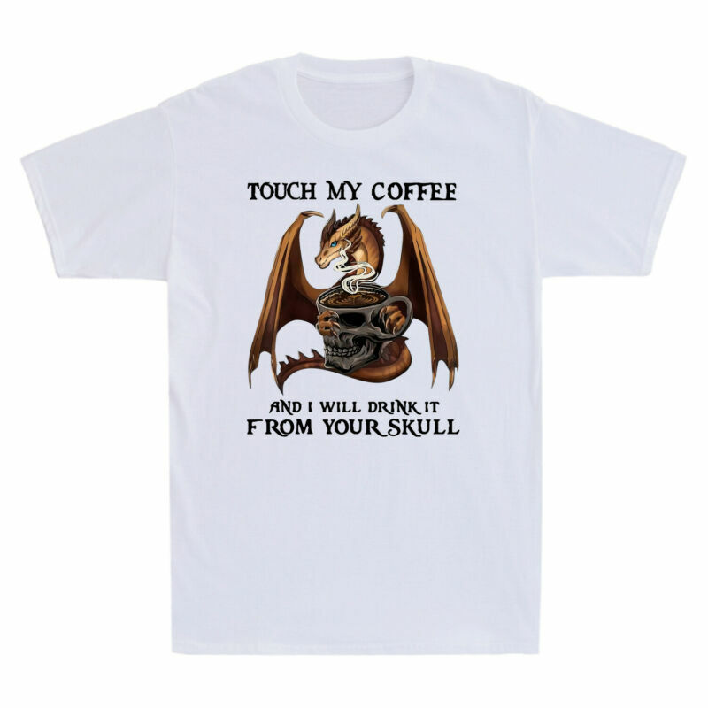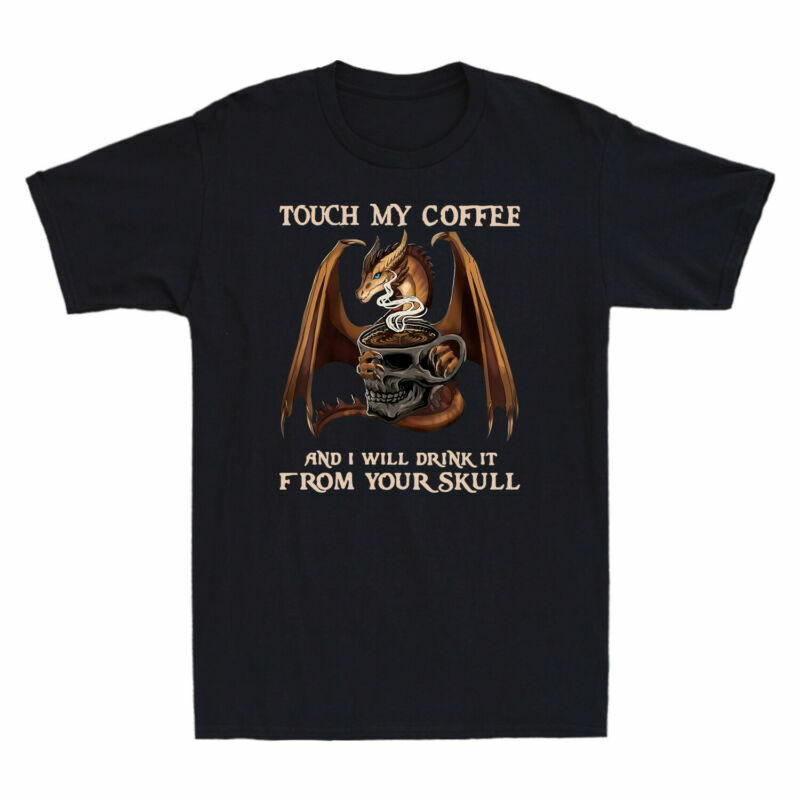 Touch My Coffee And I Will Drink It From Your Skull Funny Dragon T-Shirt Men Tee