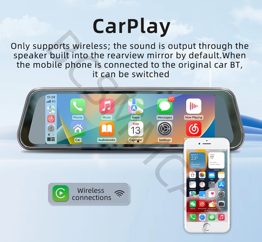Product View Detail 9.36in 2.5D Rearview Mirror Driving Recorder Streaming Media Touch Screen Wireless Android Auto/CarPlay Mirrorlink Bluetooth FM Audio Car Multimedia Video Player Add our listing to Watchlist Or Add to Cart , you will get more discount Basic parameters Model : B5319R Type : Rearview mirror recorder (streaming media) System : Allwinner melis system Software solution : F133 Radio transmission frequency Preset frequency : 88.60, 89.50, 91.50, 93.00, 93.90, 95.10 Optional frequency range 87.5~108.0MHz Radio transmission IC : AB5301B Amplifier IC : CS8571E Output power : Built-in 1W speaker Working voltage : USB 5V Working temperature : -10~60℃ Bluetooth version : 5.0 version (default name: SWL-BT) CPU : F133 Running memory : 1Gbit DRAM Display resolution : 1280x320 Screen size : 9.36 inches 2.5D rearview mirror touch screen Installation size : 275x130MM Host depth : 35MM Function parameters Mobile phone interconnection Wireless mobile phone mirroring screen projection; Wireless Android AUTO; Wireless Apple CarPlay Reversing image : Support( Not included Rear camera ) Driving recorder : Support (built-in) Built-in speaker : Support TF card: Support driving record storage ( Not incluced TF card) Bluetooth audio switching : Support Four-way audio switching: AUX/BT/FM/SPK Audio output : Support Audio format : MP3/AAC/APE/OGG/M4A/RA/WAV Video format : H263/H264/H265/DIVX HD/AVI/FLV/MKV/MPEG/MP4/WMV9/VC/ASF/TS/QT Image format : JPEG/PNG/BMP/GIF/TIFF Language parameters:English, Chinese, Traditional Chinese, Spanish, Portuguese, Russian, German, French, Polish, Turkish, Arabic, Hebrew, Italian, Czech, Japanese, Korean, Greek, Dutch Recorder resolution : 720P Accessories 1. Host 2. Instruction manual 3. Cigarette lighter+mini USB power cord 4. Reverse video cable 5. AUX audio adapter cable 6. Rubber bandage x2 (accessories, instructions, packaging may be updated from time to time, subject to actual receipt) Basic functions 1. Radio frequency transmission function 2. Bluetooth function 3. Wireless mobile phone mirror projection; Wireless Android AUTO; Wireless Apple CarPlay 4. Reverse rearview function(not included rear camera ) 5. Driving recorder 6. Audio output optional (AUX/BT/FM/SPK) Shipping Policy Payment Method Returns Policy Shipping Policy Payment Method Returns Policy Copyright © 2017 DataCaciques Home Payment Shipping About us Contact us BCSMMCAR Store Categories Store Categories Other Product View Detail 9.36in 2.5D Rearview Mirror Driving Recorder Streaming Media Touch Screen Wireless Android Auto/CarPlay Mirrorlink Bluetooth FM Audio Car Multimedia Video Player Add our listing to Watchlist Or Add to Cart , you will get more discount Basic parameters Model : B5319R Type : Rearview mirror recorder (streaming media) System : Allwinner melis system Software solution : F133 Radio transmission frequency Preset frequency : 88.60, 89.50, 91.50, 93.00, 93.90, 95.10 Optional frequency range 87.5~108.0MHz Radio transmission IC : AB5301B Amplifier IC : CS8571E Output power : Built-in 1W speaker Working voltage : USB 5V Working temperature : -10~60℃ Bluetooth version : 5.0 version (default name: SWL-BT) CPU : F133 Running memory : 1Gbit DRAM Display resolution : 1280x320 Screen size : 9.36 inches 2.5D rearview mirror touch screen Installation size : 275x130MM Host depth : 35MM Function parameters Mobile phone interconnection Wireless mobile phone mirroring screen projection; Wireless Android AUTO; Wireless Apple CarPlay Reversing image : Support( Not included Rear camera ) Driving recorder : Support (built-in) Built-in speaker : Support TF card: Support driving record storage ( Not incluced TF card) Bluetooth audio switching : Support Four-way audio switching: AUX/BT/FM/SPK Audio output : Support Audio format : MP3/AAC/APE/OGG/M4A/RA/WAV Video format : H263/H264/H265/DIVX HD/AVI/FLV/MKV/MPEG/MP4/WMV9/VC/ASF/TS/QT Image format : JPEG/PNG/BMP/GIF/TIFF Language parameters:English, Chinese, Traditional Chinese, Spanish, Portuguese, Russian, German, French, Polish, Turkish, Arabic, Hebrew, Italian, Czech, Japanese, Korean, Greek, Dutch Recorder resolution : 720P Accessories 1. Host 2. Instruction manual 3. Cigarette lighter+mini USB power cord 4. Reverse video cable 5. AUX audio adapter cable 6. Rubber bandage x2 (accessories, instructions, packaging may be updated from time to time, subject to actual receipt) Basic functions 1. Radio frequency transmission function 2. Bluetooth function 3. Wireless mobile phone mirror projection; Wireless Android AUTO; Wireless Apple CarPlay 4. Reverse rearview function(not included rear camera ) 5. Driving recorder 6. Audio output optional (AUX/BT/FM/SPK) Shipping Policy Payment Method Returns Policy Contact US Shipping Policy All items will be checked before packing. All items are new and of high quality. Item will be shipped within 1 business days upon receipt of payment, excluding weekends and public holidays. If to USA,we will ship your order by USPS,it will take about 8-12 working days to you,and you can track it on line. If to other country,we will ship your order by China Post or Singapore Registered Air Mail,it will take about 14-21 working days to you,you aslo can track it on line. Delivery time is about 14-28 business days and it may take up to 8 weeks . Payment Method We accept payment by PayPal only ! Payment should be completed within 5 days after buyer places the order,or else an unpaid case will be opened in order to cancel the transaction. If you can not pay in time, please contact us. e-check from PayPal will only be processed once the payment clears. All of the items will be shipped to buyer's EBAY address,please confirm your address on Ebay before you buy.Your order will be usually shipped out the same or next business days once the payment is made and cleared. Returns Policy 30-day Warranty with Exchange for defective, malfunctioned, incorrect or parts-missing items. Please notify us and return the item with all parts and ac