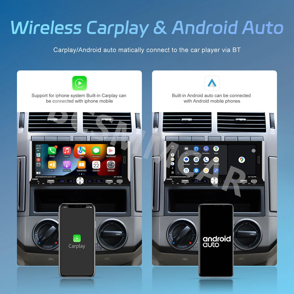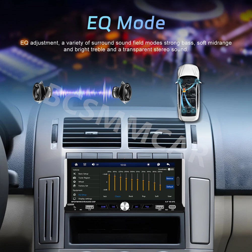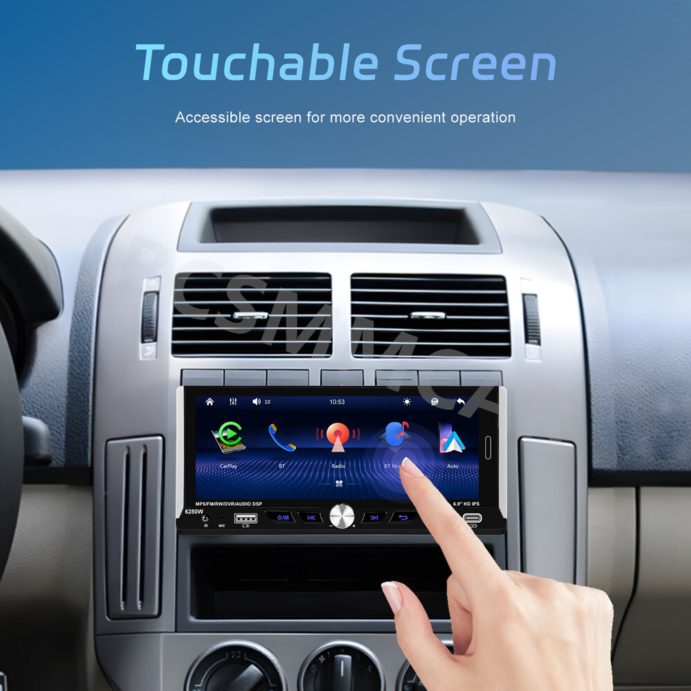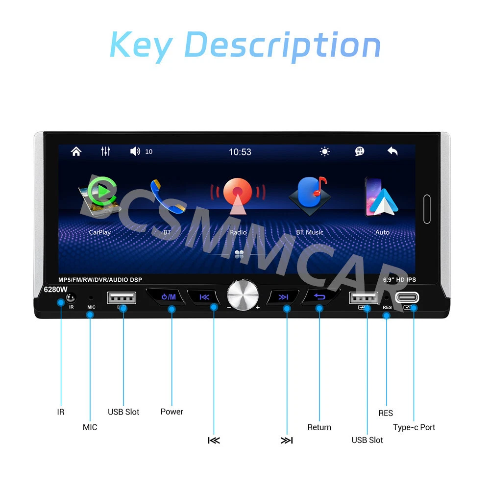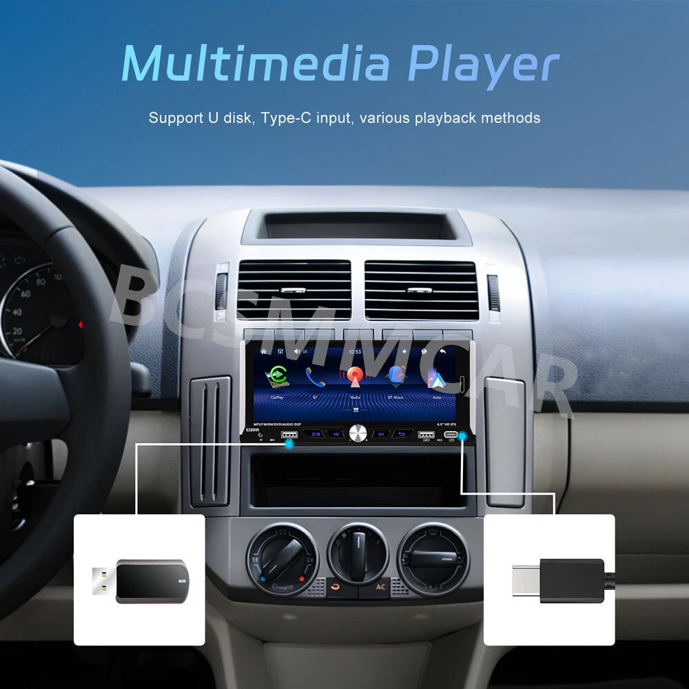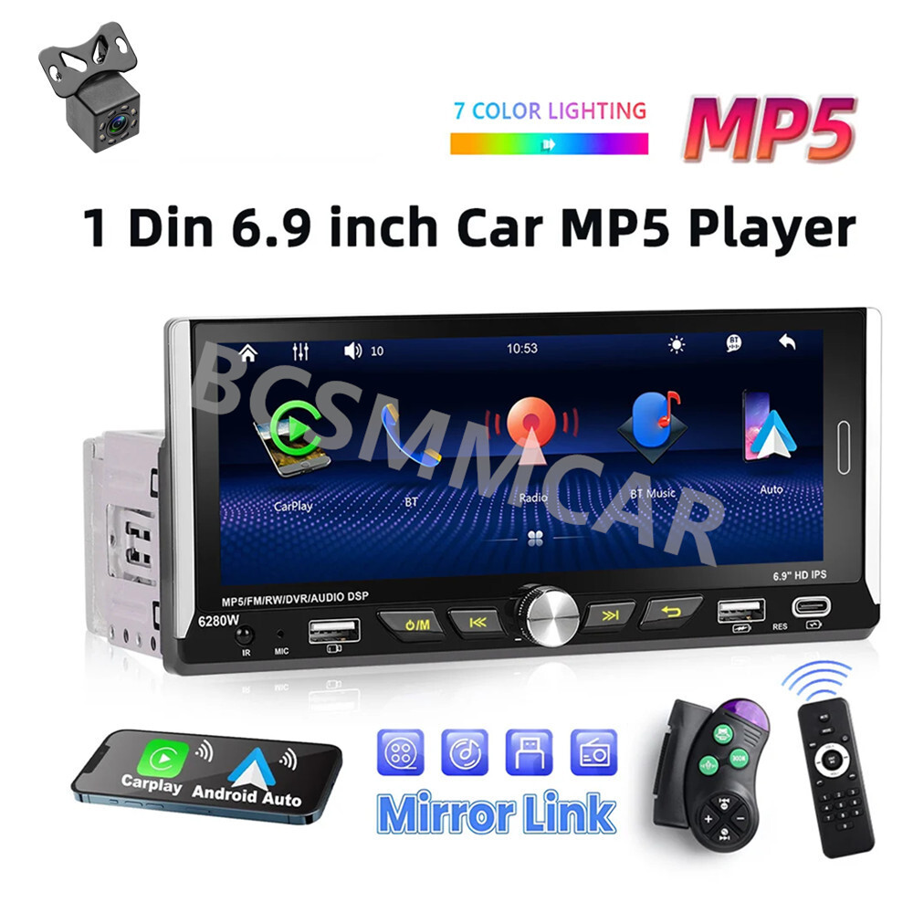 Product View Detail 1 Din Car Stereo MP5 Player Car Radio 6.9 Inch Multimedia Player Carplay Android Auto Bluetooth Screen Mirroring USB With 8LED Rear Camera Kit Note:Please check your car with radio's size !!! Features: ●Wireless Carplay: You can choose wireless connection to carplay, connect to Apple mobile phone, access mobile phone address book, mail, notification, map navigation, music, video and other information, and realize voice control. ● Android auto: The Android auto car system can closely integrate the user's Android phone and player, and realize navigation, make calls, send and receive information, listen to music and other operations through data cable connection. ● 6.9-inch high definition 2.5D IPS touch screen, dynamic menu interface. ● Mirror Link: Support Android/ Iphone Mirror Link through phone's original USB line synchronized to the on-board screen. ●Steering wheel control: Support steering wheel button learning function, through it you can control the functions that you need by steering wheel, more convenient. ● Hardware electronic sounds (EQ) processing, multiple EQ modes, treble and bass can be adjusted. ●FM/RDS radio with high-quality stereo, which can search channels in full-automatic ways,semiautomatic way and acurate adjustment way;Listen to music, newsletters and traffic information anytime, anywhere. ●Power off memory function: The player can automatically remember the playing state when power off (shutdown), and when it is restarted, it will automatically remember the previous music or radio playing state ● Built-in Bluetooth function, can connect with mobile phone, and support hands-free calling, phone book download. ● Support large memory TF card / U disk to store songs, you can download your favorite music or movies to play on this unit. ●Multi-function USB &TYPE-C port:allow you to connect your devices and enjoy your favorite music, videos, and photos. You can also charge your devices using the ports while driving. The ports support various formats and are easy to use. ● Colorful backlight settings, colorful backlights of the key can change automatically ●Rear view camera input function: if connect to a car backup camera, the car stereo monitor will turn to rear view reversing details automatically Specifics Model: 6280 Voltage:DC12V System:WINCE CPU Chip: F133 Screen size: 6.9'' screen Screen resolution: 1280*480 Mirror link:Support Radio Band:FM/RDS Radio Chip:QN8035 Power output:45W*4 Work temperature: -10~60℃ Bluetooth Version: 5.0 Bluetooth Name:CAR BT Colorful backlight: Support Reversing input: CVBS Power amplifier chip:TDA7388 Radio frequency:87.5-108MHz Audio format:MP3/WMA/WAV/APE/FLAC Video format:RM/RMVB/AVI/MP4/MKV/3GP Picture format: JPG BMP PNG language: English/Chinese/Spanish/Portuguese/Russian/Italian/German/French/Turkish/Czech/Arabic/Polish/Hebrew Package Included: 1 x Car MP5 Player 1 x Power Cable 1 x Horn Cable 1 x Accessories 1 x MIC 1 x Steering Wheel Control 1 x User manual 1 x 8LED Rear Camera Shipping Policy Payment Method Returns Policy Shipping Policy Payment Method Returns Policy Copyright © 2017 DataCaciques Home Payment Shipping About us Contact us BCSMMCAR Store Categories Store Categories Other Product View Detail 1 Din Car Stereo MP5 Player Car Radio 6.9 Inch Multimedia Player Carplay Android Auto Bluetooth Screen Mirroring USB With 8LED Rear Camera Kit Note:Please check your car with radio's size !!! Features: ●Wireless Carplay: You can choose wireless connection to carplay, connect to Apple mobile phone, access mobile phone address book, mail, notification, map navigation, music, video and other information, and realize voice control. ● Android auto: The Android auto car system can closely integrate the user's Android phone and player, and realize navigation, make calls, send and receive information, listen to music and other operations through data cable connection. ● 6.9-inch high definition 2.5D IPS touch screen, dynamic menu interface. ● Mirror Link: Support Android/ Iphone Mirror Link through phone's original USB line synchronized to the on-board screen. ●Steering wheel control: Support steering wheel button learning function, through it you can control the functions that you need by steering wheel, more convenient. ● Hardware electronic sounds (EQ) processing, multiple EQ modes, treble and bass can be adjusted. ●FM/RDS radio with high-quality stereo, which can search channels in full-automatic ways,semiautomatic way and acurate adjustment way;Listen to music, newsletters and traffic information anytime, anywhere. ●Power off memory function: The player can automatically remember the playing state when power off (shutdown), and when it is restarted, it will automatically remember the previous music or radio playing state ● Built-in Bluetooth function, can connect with mobile phone, and support hands-free calling, phone book download. ● Support large memory TF card / U disk to store songs, you can download your favorite music or movies to play on this unit. ●Multi-function USB &TYPE-C port:allow you to connect your devices and enjoy your favorite music, videos, and photos. You can also charge your devices using the ports while driving. The ports support various formats and are easy to use. ● Colorful backlight settings, colorful backlights of the key can change automatically ●Rear view camera input function: if connect to a car backup camera, the car stereo monitor will turn to rear view reversing details automatically Specifics Model: 6280 Voltage:DC12V System:WINCE CPU Chip: F133 Screen size: 6.9'' screen Screen resolution: 1280*480 Mirror link:Support Radio Band:FM/RDS Radio Chip:QN8035 Power output:45W*4 Work temperature: -10~60℃ Bluetooth Version: 5.0 Bluetooth Name:CAR BT Colorful backlight: Support Reversing input: CVBS Power amplifier chip:TDA7388 Radio frequency:87.5-108MHz Audio format:MP3/WMA/WAV/APE/FLAC Video format:RM/RMVB/AVI/MP4/MKV/3GP Pi