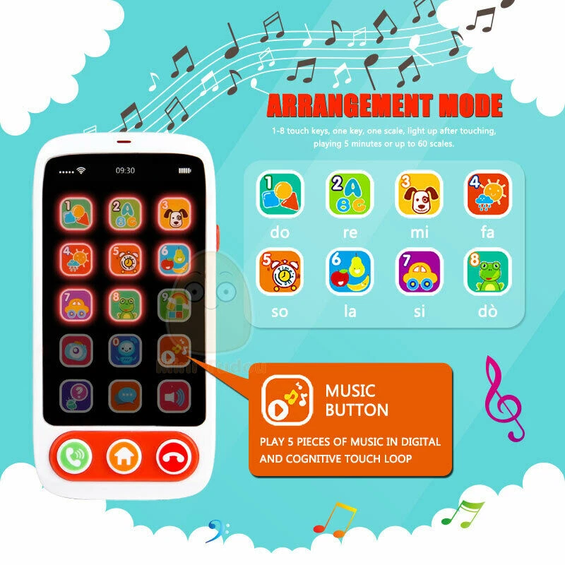 Touch Screen Phone Toy Play Music Learning Educational Cell Phone For Baby Kids From Mini Tudou Meet Babies Curiosity: Baby above 6 month old is curious to everything, like to imitate their parents. Parents guide the toddler to pretend to call and chat with the toy phone, interact with the child, exercise their oral and thinking ability. This is a best early education toy. Cheap Toy Phones, Buy Quality Toys & Hobbies Directly from China Suppliers:Baby Mobile Phone Toy Kids Fake Phone Cartoon Music Simulation Sound Babyphone Early Educational Learning Toys For Children Gift Enjoy Feature: 1.There are 15 light-up App images on the big touch screen. Like a message, timer and camera, etc. 2.Clicking the home button to switch 5 funny modes of play on this baby play phone.Like painting mode, whack-a-mole mode, Digital mode, Cognition mode, Piano play mode. Payment Delivery details Terms of sales About us Contact us Payment We accept all the payment of Ebay. Delivery details We Ship from the domestic America. Terms of sales We will make discount and some promotions from time to time, please keep following us. About us Our company established from 2013,focus on BABY DEVELOPMENTAL TOYS.And we have our own brand and patent.All of our products are shooting in kind 100%.Product images may have a certain color difference due to display resolution, photographic light, and other factors. Contact us Please send us message,we will try our best to answer your questions. Brand Mini tudou Type Musical Toy Color White Gender Unisex Age Level 12-18 Months Theme phone Skills Creativity MPN does not apply Custom Bundle No Model does not apply Bundle Description does not apply Modification Description does not apply California Prop 65 Warning does not apply