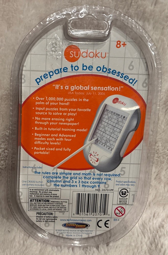 MPN: 20701 Color: Silver Recommended Age Range: 8+ Year: 2005 gtin13: Does Not Apply Country of Origin: China Brand: Techno Source Character Family: N/A UPC: Does Not Apply Game Title: Sudoku Type: Handheld Electronic Game