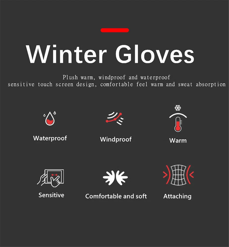 Description Specially designed for Winter outdoor sports, skiing, cycling, skating, climbing, running and outdoor working in cold winter 4 Size for You to Choose( Glove Size ),Please measure the palm circumference and choose the suitable size: S: 7.28-7.48 inches palm circumference of gloves, 3.54 inches across palm of gloves, 8.86 inches total length. M: 7.48-7.87 inches palm circumference of gloves, 3.7 inches across palm of gloves, 9.05 inches total length. L: 7.87-8.27 inches palm circumference of gloves, 3.94 inches across palm of gloves, 9.45 inches total length. XL: 8.27-8.66 inches palm circumference of gloves, 4.13 inches across palm of gloves, 9.84 inches total length. (If you hesitate between two sizes, we recommend you to choose the larger size.Manual measured, 0.4-0.8 inches deviation allowed.) Winter Thermal Gloves - Must have aaccessory for the Harsh cold winter seasons Reason for Choosing winter Cold Weather Gloves: Thermal Gloves Classic color winter gloves can pair off your any outfits Touchscreen Gloves Index finger tips are coated conductive leather, you can operate your smartphone, texting, tapping, playing games, snap a picture without taking warm gloves off Anti slip Design Superior Grip: Premium PU leather in palm increase friction and anti slip; Help you to grip little things safely Comfortable Warm Gloves Ergonomic design: Designed for your hands Winter Warm Gloves Come with Superior warmth but without excess bulky Waterproof Design Winter gloves with both water resistant outshell and Waterproof TPU membrane can resistant rain and snowmelt, keep your hands warm and dry; Lock heat Cold Weather Gloves: Keep your hands warm and cozy in even the coldest weather conditions with our Cold Gloves. Designed for both men and women, these gloves are a must-have accessory for any outdoor enthusiast. Materials: Our gloves are made with high-quality materials, featuring excellent waterproof and windproof properties. TPU waterproof layer is sewn in special way in thermal gloves. Thermal insulated gloves can keep your hand warm always even in light rain or snow while you are working or doing sports in low temperature. Crafted with durable abrasion-resistant fabric, these gloves are built to last. Every movement feels natural and they have good thermal insulation. Sensitive Touchscreen: Stay connected while wearing our gloves thanks to the innovative flip design of the fingertips at the fingertips. Easily operate your touchscreen devices without removing your gloves, making it convenient for texting, browsing, and more. Enhanced Grip: Fitted with a non-slip silicone texture on the palms, our gloves provide enhanced grip and control. Whether you're skiing down the slopes or gripping handlebars during a cycling adventure, these gloves offer reliable traction. Warm Wrists: The elastic cuffs ensure a snug fit and further enhance warmth and protection around the wrists. Ideal for skiing, snowball fights, shoveling, cycling, and various outdoor activities, our gloves provide optimal comfort and functionality. Additionally, they make perfect gifts for your loved ones during the holiday season, showing that you care about their warmth and comfort.