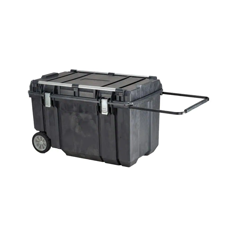 HOME Feedback Save Seller Newsletter Contact us Tough Chest 38 in. W 63 Gal. Polypropylene Rolling Tool Box Description 23.1 inches x 38.9 inches x 24.3 inches. Weight: 35.728 lb Color Family Black Color/Finish Black Features Lid Strike,Lockable Holding Capacity (cu in) 21835 cu in Included Accessories No Additional Items Included Material Polypropylene Product Weight (lb) 35.728 lb Returnable 90-Day Tool Box Type Rolling Tool Box Tool Storage Product Type Rolling Tool Box Maximum Handle Length (in) 9 in Product Depth (in) 38.9 in Product Height (in) 24.3 in Product Width (in) 23.1 in Large portable rolling tool chest with wheels and 154 lb capacity Waterproof and built-in support on lid for additional top loading 7 in. rubber wheels so one person can easily transport The DEWALT DWST38000 63 Gal. Tough Chest is ideal for getting your larger tools and equipment to the jobsite. This chest is designed with 7 in. rubber wheels so one person can easily transport heavy loads. The top of this chest features metal rails that allow for extra storage options. Payment PayPal is our preferred method of payment. If you do not have a PayPal account, all major credit cards are gladly accepted through PayPal as the payment processor. PayPal offers great buyer and seller protection. Your order will be processed pending receipt of cleared payment through PayPal. Sales tax may be charged depending on your location. Shipping We provide Free and Fast shipping. Most items are shipped within 3 business days of receiving cleared payment. We ship to the lower 48 contiguous United States only. We do not ship to P.O. boxes or APOs. We are always working hard to ensure your package arrives as soon as possible. Please understand that some factors like weather, high postal traffic, and the performance of shipping companies are outside of our control. (We ship the product from multiple warehouses). Returns We offer a 30-day return/exchange policy for most of our products. You can request a refund if you are dissatisfied for any reason with your product. (Restocking Fee May Apply). Only factory defects are accepted as a reason for a return. In the case of factory defects, if available, we will replace the product for you. When returning an item, it must be in all of the original packaging and include all of the original accessories or items that came with it. The item and package should be in original and perfect condition. All returns MUST be done within 30 days of the date of purchase. Please note that we cannot give refunds or replacements after the 30-day limit has expired. We are extremely fair, and in the rare event of something out of the ordinary happening with our products or shipping, we will gladly work with you to find a fair resolution. Feedback Feedback on eBay is a very important part of our Business as it is the feedback that we receive from our customer which shows any potential new customer that we are a trusted, friendly, efficient and proactive company. If for any reason you are not happy with your experience with salma-antique contact us and there is not issue large or small that we cannot try and resolve. We are all human and can make a mistake but it is how you fix that mistake that counts. Please give us that chance to sort it out before leaving a negative feedback. If you do not contact us about any issues you have we cannot resolve it. Please leave us positive feedback and all "5's" on the DSR, if you are happy with our service and product as this is what improves all Ebay sellers to provide the experience that all buyers want. Contact Us Click here to Contact Us