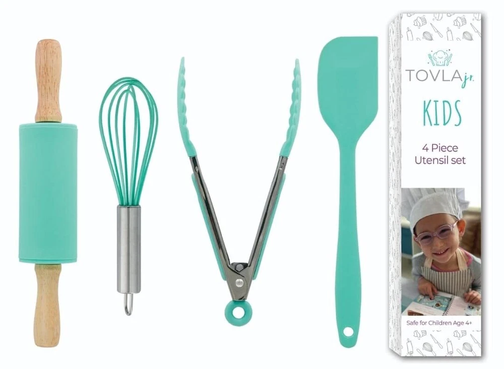 The Ultimate Kid Kitchen Utensils Set Is Finally Here! Looking for a set of baking supplies that will allow your little chef to cook with you? Want a set of non-and safe cooking accessories for your tiny baker? Need a set of kid-safe baking tools that will offer you that much-needed peace of mind in the kitchen? Introducing The Tovla Jr. 4-Piece Cooking Utensils Set! If your kid loves helping you cook dinner or bake delicious treats, then the Tolva Jr. kid safe cooking utensils set is exactly what you need. Designed with your kid's safety in mind, our kid safe kitchen tools will allow your little helper to cook with you without running the risk of accidents. Top 3 Reasons Why (And Parents) Love Our Real Kitchen Utensils: ✅ Support Your Kid's Early Development: Cooking can help enhance your kid's fine motor skills, improve languge development, and encourage bonding. ✅ Spend Quality Time Together: Your kid will love helping out in the kitchen and our kid safe cooking accessories will make the process easier and safer. ✅ Ideal Gift For Boys And Girls: Whether you are looking for a birthday present for your or a Christmas present for your grandkids, look no further than the Tovla Jr. baking kit. Need More Reasons? ✔️ 100% Food Non-Silicone Cooking Utensil Set ✔️ Gender-Neutral Blue Color ✔️ Perfectly Sized Cooking Tools For Little Hands What You Get: 1 x Spatula, 1 x Whisk, 1 x Rolling Pin, 1 x Pair of Tongs What Are You Waiting For? Scroll Up, Click "Add To Cart" NOW And Start Cooking! 🍴 Ultra-Fun 4-Piece Cooking Set: Unleash your kid's culinary creativity with the Tovla Jr. 4-piece baking kit, which includes 1 x spatula, 1 x whisk, 1 x rolling pin, and 1 x pair of tongs for endless hours of cooking fun! 🍴 Safe Food-Non-Cooking Kit: Made from food-silicone, our mini kitchen utensils are 100% safe for little hands. Offer your little chef a set of kitchen utensils that will make cooking or baking fun and safe. 🍴 Adorable Gender-Neutral Chef Set For Boys And Girls: Our cooking tools come in a stylish, gender-neutral blue color, which makes them ideal for both boys and girls who love spending time in the kitchen. 🍴 Easy-To-Clean Cooking Supplies: If you are looking for baking utensils that will make clean-up a breeze, look no further. Our silicone kitchen utensil set is extremely easy-to-clean, saving your precious time and effort. 🍴 The Baking Set That Keeps On Giving: Surprise every with this cute cooking starter kit today. Spoil your daughter, son, niece, nephew, grandson, or granddaughter with a stunning birthday or holiday gift today!