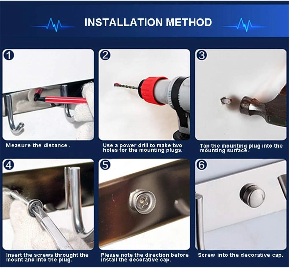 Store New Arrivals Add to Favorite View Feedback Contact Towel Hook Rack Wall Mounted 17-Inch Coat Hanger with 7 Heavy Duty Hook, Easy to Install Rail for Bedroom, Bathroom, Foyer, Hallway, Garden, Office (304 Stainless Steel Brushed Nickel) Description Weight Capacity Maximum 20 Pounds Mounting Type 墙体 Item Dimensions 17.3 x 2 x 2 inches Color Silver Material Stainless Steel Material Type Stainless Steel Weight Supported 15 Kilograms Item Weight 0.56 Kilograms Number of Hooks 7 Theme Modern Recommended Uses For Product Key Hanger, Towel, Wall, Holder, Coat Surface Recommendation Bathroom Shape Circle Finish Types Brushed Additional Features Adjustable Easy Install, Rust Resistant Finish Type Brushed Style Name Modern Included Components Mounting Hardware ★ Versatile Use - This Hook Rack is suitable for various locations, including bathrooms, kitchens, living rooms, entrances, and offices. Use it to hang coats, towels, keys, jackets,kitchenware, hats, wallets, and more, adding functionality and organization to your space. ★Easy InstallationI - Mounting this wall hook rack is a breeze, whether on a wall or wooden door. It includes all necessary mounting hardware, ensuring a hassle-free installation process. ★ 304 stainless steel - The surface of Sagmoc hook rack was wiredrawing treatmented, moisture-proof and anticorrosion, long time resistance to salt, water and other acidic substances corrosion, able to withstand the most demanding conditions. ★ Thicker rod & strong load-bearing - The base is enlarged and thickened, high-end and firm, not easy to deformation, solid hook design, non-slip and not fall. All the hook head of the coat rack made chamfer treatment, not easy to hurt people and items. (Special reminder: We ensure that our product size is approximately 17.3 inches long and weighs approximately 0.55 KG, as shown in the picture. Please consider whether this size meets your needs before purchasing to avoid returns due to size mismatch). Features : We grasp every subtle detail and focus on quality. Every hook is carefully grinded and polished to make sure every aspect of it is smooth and never hurt our customers’hands. The main panel uses wiredrawing craft and solid material to make the hook durable, anti-slip and feel good. We adopt Germanic welding technology to make the welding part strong and durable. Thick and fine packaging can protect surface from scratches. In addition, it can absolutely satisfy your purpose. You can hang rags, keys, hats and bags, etc. on it.(Special reminder: Some customers have reported that the actual product they received feels a bit small. In fact, we ensure that our product size is approximately 17.3inches long and weighs approximately 0.55KG, as shown in the picture. Please consider whether this size meets your needs before purchasing to avoid returns due to size mismatch). ABOUT US We offer the best prices around on high quality products. Our E-store includes media such as books, movies, music and games while offering electronics, toys, sporting apparel, clothing, tools, general home, garden items and more. SHIPPING We are always working hard to ensure your package arrives as soon as possible. Please understand that some factors like weather, high postal traffic, and the performance of shipping companies are outside of our control. We offer free shipping to the lower 48 states and ship within 2 business days of payment, usually sooner. We do not accept P.O. Boxes. Please provide a physical address. For shipping outside of the continental USA, we only use eBay's Global Shipping Program.The item is shipped to KY and then sent to the rest of the world. International customers are responsible for all duties and taxes. Continue to check out in order to calculate costs for shipping the item to your country. Messages regarding eBay's Global Shipping Program MUST be directed at eBay EXCLUSIVELY. RETURNS We offer a 30-Day Return Policy on items which you are not completely satisfied with. You have the option for a full-refund or an exchange of the item. No returns are available on items shipped outside of the USA. PAYMENT We accept PayPal. CONTACT US This page content is yet to come Please ad us to your favorite seller and visit again later Thank You CUSTOMER SATISFACTION We try our very best to make sure every customer is completely satisfied. If there's a problem, message us! We're happy to help. WE ACCEPT Copyright © 2021 AutoDS. | All Rights Reserved