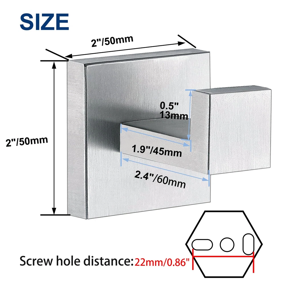 [Great Performance to Anti Rust]: The towel hooks for bathroom is made of metal SUS304 type high-quality stainless steel, added with 18/10 chromium/nickel content, corrosion-resistant, heavy-duty, and never rust. 4 protective layers are added to SUS304 stainless steel to make it more sturdy, firmer, more rust-proof and smooth, without sharp edges.Suitable for the humid environment such as bathroom and kitchen. [Brushed Nickel Finish]: Our Brushed Nickel towel hook is hand brushed stainless steel finish and compatible with your modern bathroom design and build to resist corrosion, scratches and tarnishing.Stylish wall hooks, beautiful and fashionable. [Super Easy to install & Remove]: The coat hooks wall mounted are very easy to install and remove and come with all hardware screw accessories. With detailed installation guide, the bathroom towel holder is easy enough to be installed by yourself without professional installer.All accessories included as well as one instruction to refer to. The job can be done within a few minutes. [Multi-applications & Multi-Functions]: Our bath towel hooks is ideal for hanging towel, coat, hat, bag, belt, key, scarf, suitable for bathroom, kitchen, bedroom, restroom, garage, laundry room, hotel, RVs, campers, boats and cabinet.The towel hanger for bathroom can be install to different surfaces such as marble, ceramic tile, wood, etc. [You Will Get]: 4 pcs bathroom robe hooks and 1set mounting accessories.If you have any problems about the products & installation,please contact us freely on Amazon.