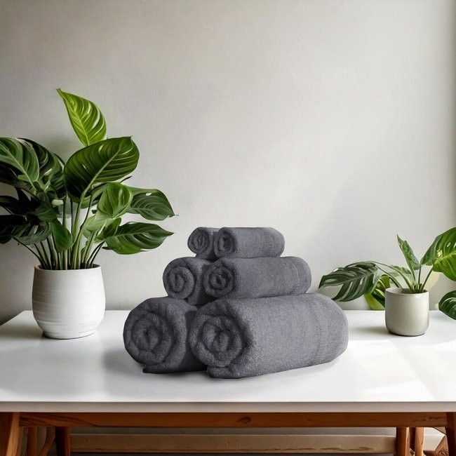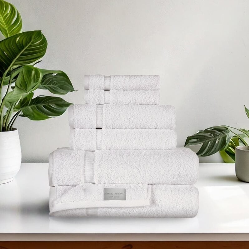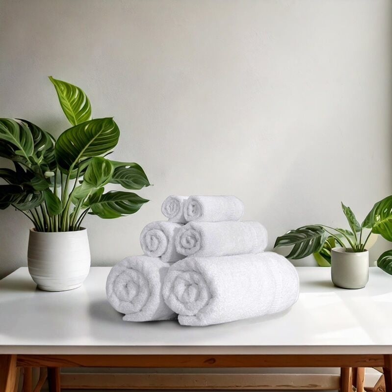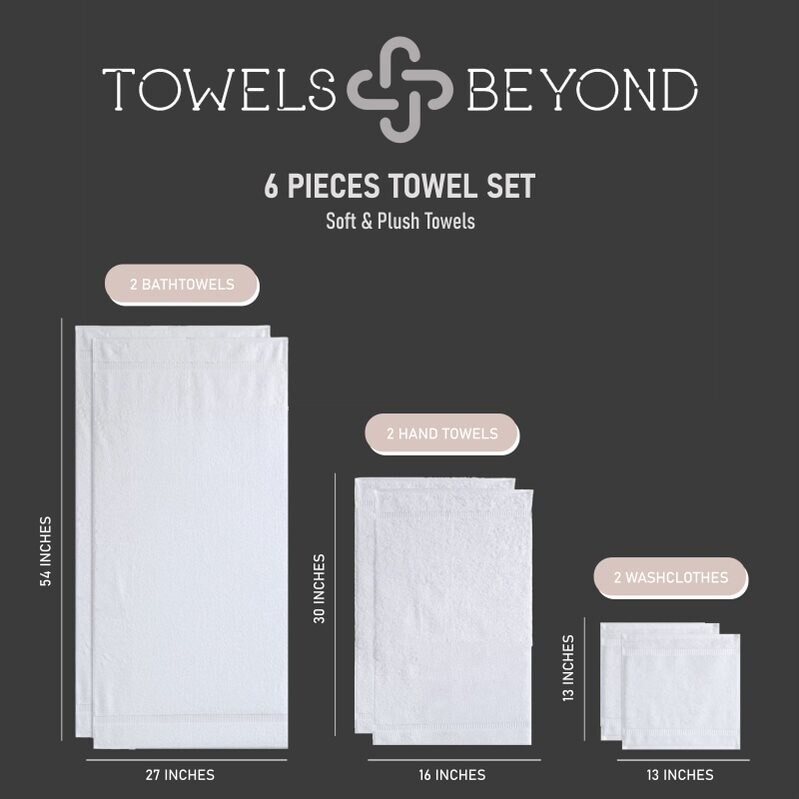 Complete the look of your bathroom decor with this matching Lucia Minelli Hardwick jacquard six-piece towel set. A product of thirsty Turkish cotton, these towels feel soft to the skin and soak up extra moisture after your bath. Each piece in this Turkish cotton towel set is machine washable for easy care.These sculpted towels are perfect for use in your master bathroom or any of your guest bathrooms. They not only feel great after a shower or bath, but they also lend a lavish touch to your private spaces. The range of colors available is ideal when changing decor for the seasons. Get two or more sets to quickly enliven and refresh the look of your bathroom.Set includes: Bath towel, hand towel, wash clothPattern: Sculpted body Type of cotton: Turkish Aegean long stable cottonConstruction: Free Shipping Over $49.99* Details Towels Beyond - Luxury 6 Piece Turkish Cotton Towel Set - Highly Absorbent & Product Description: Complete the look of your bathroom decor with this matching Lucia Minelli Hardwick jacquard six-piece towel set. A product of thirsty Turkish cotton, these towels feel soft to the skin and soak up extra moisture after your bath. Each piece in this Turkish cotton towel set is machine washable for easy care. These sculpted towels are perfect for use in your master bathroom or any of your guest bathrooms. They not only feel great after a shower or bath, but they also lend a lavish touch to your private spaces. The range of colors available is ideal when changing decor for the seasons. Get two or more sets to quickly enliven and refresh the look of your bathroom. Set includesBath towel, hand towel, wash cloth PatternSculpted body Type of cottonTurkish Aegean long stable cotton Construction2 ply yarn Color optionsWhite, sage green, baby pink, birch, blue and banana Materials100-percent premier Turkish cotton Each item is 600 gsm Care instructionsMachine wash warm Bath towel27 inches wide x 55 inches long Hand towel16 inches wide x 27 inches long Wash cloth12 inches wide x 12 inches long The digital images we display have the most accurate color possible. However, due to differences in computer monitors, we cannot be responsible for variations in color between the actual product and your screen.
