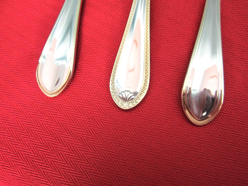 Color: Silver with Gold Trim Country/Region of Manufacture: Vietnam Department: Adults Type: Salad Forks Set Includes: Salad forks Care Instructions: Machine Washable up to 140°F Material: Gold electroplate, Stainless Steel Handle Pattern: Solid Features: Dishwasher Safe, Reusable Brand: Towle Style: Sinclair Gold Item Length: 7 3/8 ins Finish: Glossy Occasion: Thanksgiving Model: Sinclair Gold Handle Material: Stainless Steel Custom Bundle: No