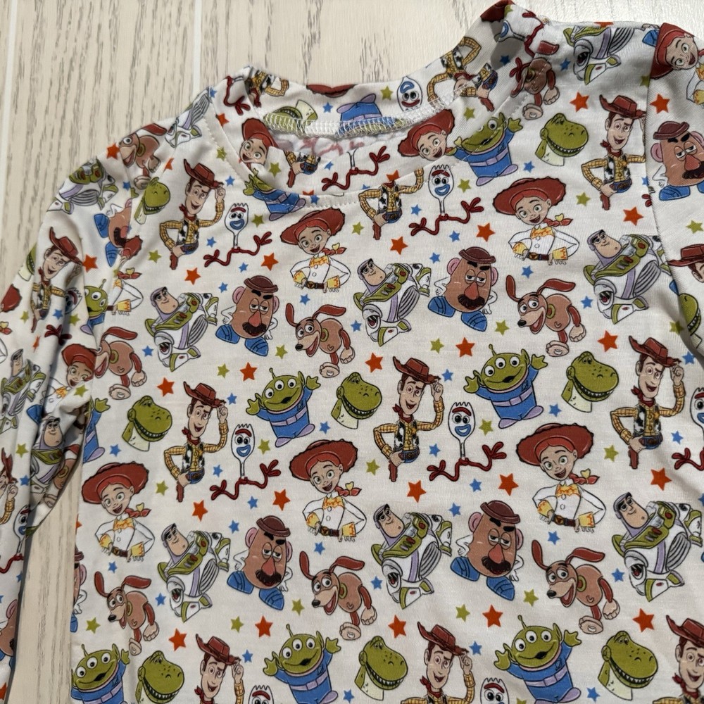 Toy Story bamboo pajama set for toddlers, size 2T, new without tags. This 2-piece set includes a long sleeve pajama top and matching pants with a fun all-over Toy Story character print featuring fan favorites like Woody and Buzz. Made from a soft, breathable bamboo blend, these pajamas are lightweight with stretch for all-night comfort and easy movement. Perfect for sleeping, lounging, or cozy movie nights. ✔ New without tags – never worn ✔ 2-piece pajama set (top & pants) ✔ Soft bamboo fabric with stretch ✔ Breathable & lightweight ✔ Long sleeves with tapered leg pants 📌 Retail price: $38 Ships quickly from a smoke & pet free home.