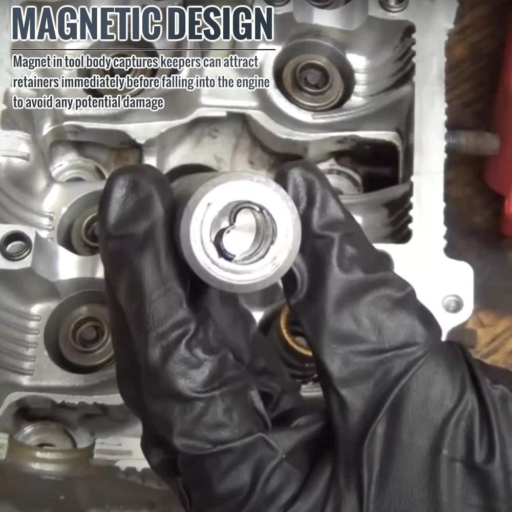 1. This tool is a lifesaver for valve spring work! The sturdy aluminum alloy construction feels durable and resists corrosion, making it a long-lasting addition to any mechanic’s toolkit. It handles Toyota 4-cylinder and Chrysler engines effortlessly, plus motorcycles and boats—so versatile! Super quick for removing and installing valve keepers, saving tons of time and hassle. Perfect for DIYers and pros alike—highly recommended!