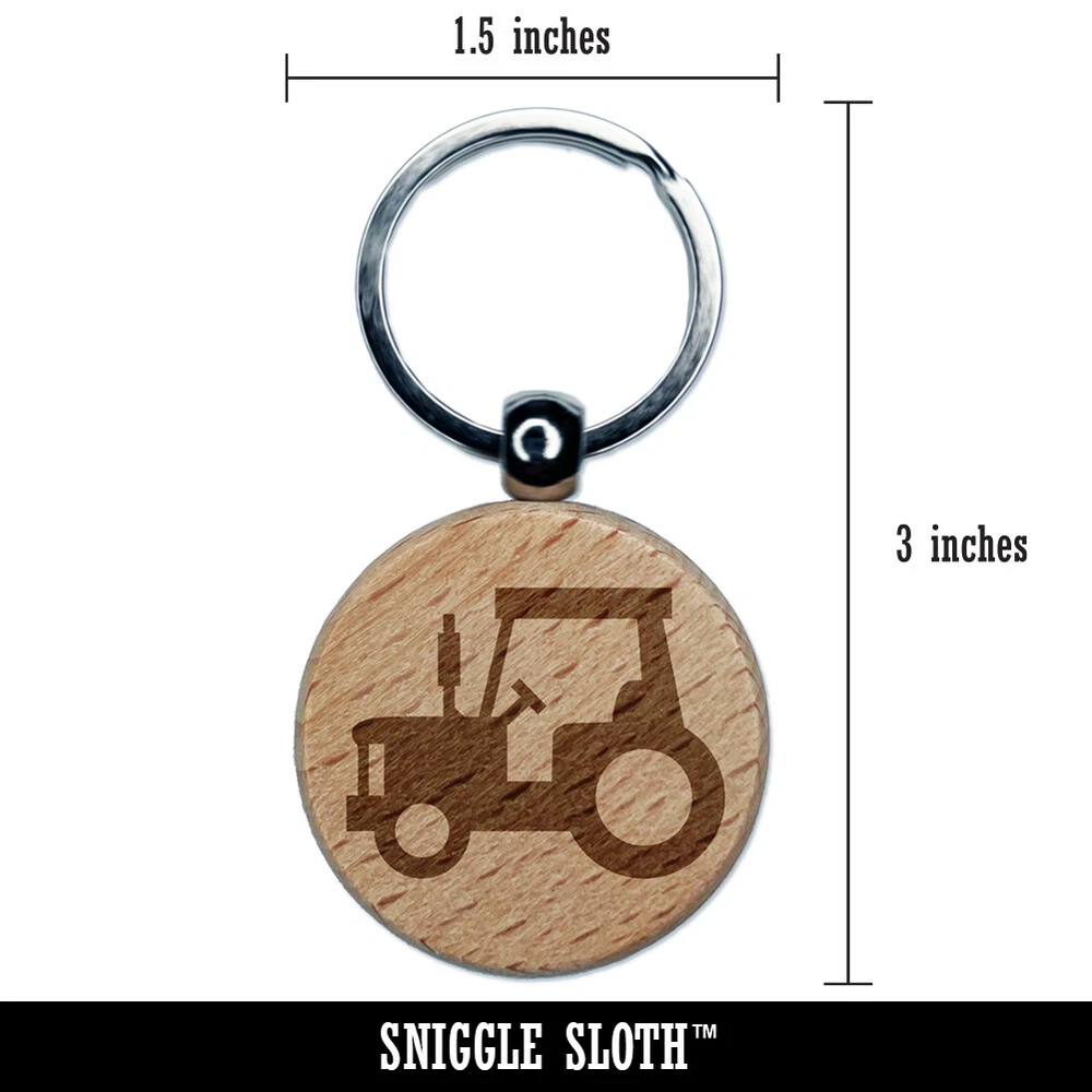 Tractor Farm Vehicle Engraved Wood Round Keychain Tag Charm