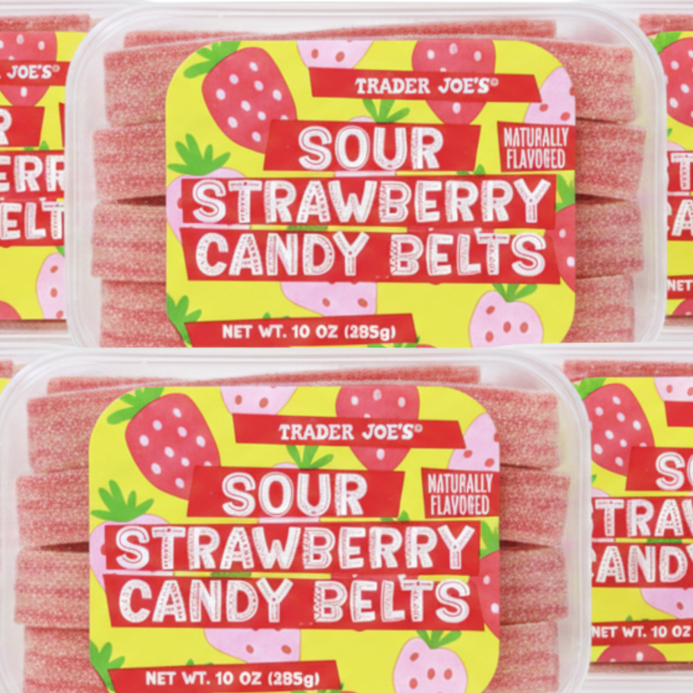 Trader Joe’s Sour Strawberry Candy Belts – 10 oz each (6-Pack). Soft, chewy sour strawberry candy belts with bold sweet-and-tangy flavor. Brand new and factory sealed. Perfect for parties, candy lovers, or stocking up on a popular Trader Joe’s treat. • Includes 6 bags (10 oz each) • Sour strawberry candy belts • Brand new, factory sealed • Bulk pack – great for parties, gifts, or resale