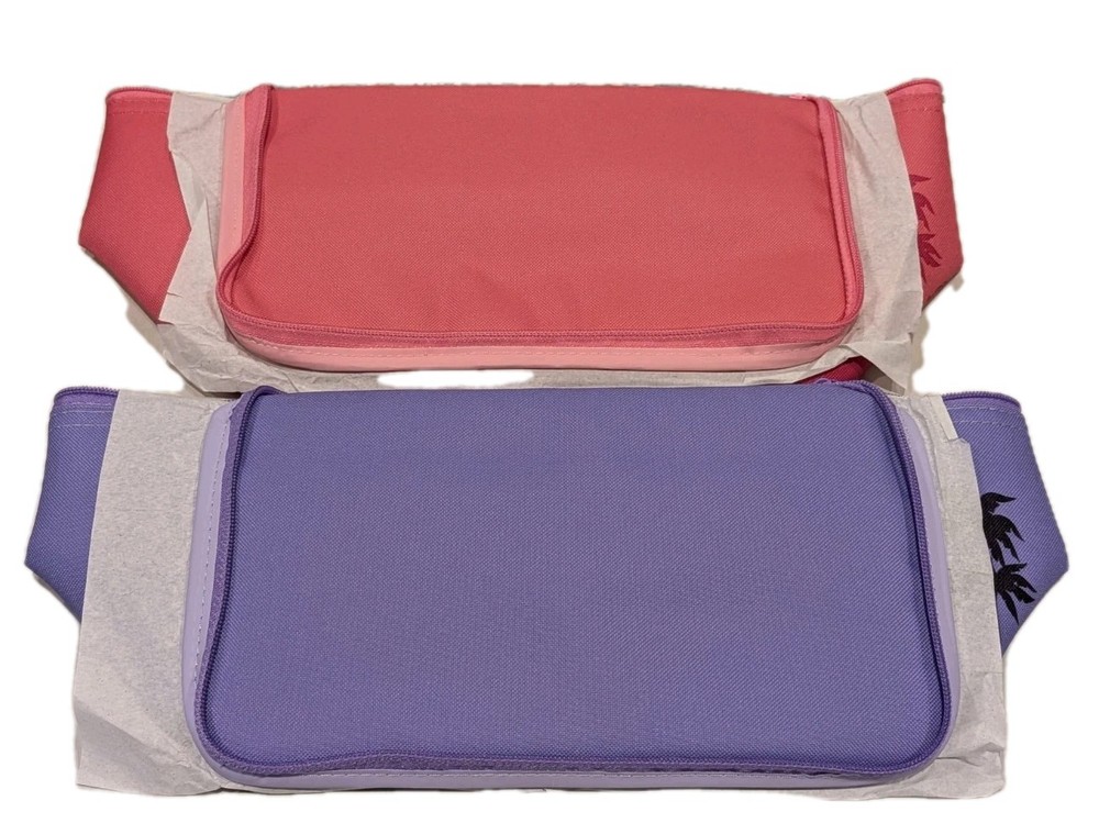 The Trader Joe's Valentines Day Mini Insulated Tote Bag is a set of two small polyester and nylon tote bags in either pink or lavender. They are 10 inches long, 6 inches high and wide, with a capacity of 1.5 gallons. These original bags feature a foldable design with a zipper closure, suitable for hand washing. Perfect for carrying items while keeping them insulated.